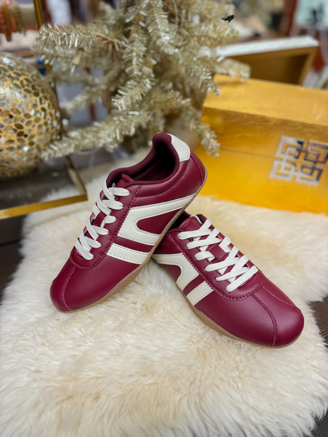 Retro Love Burgundy Stripe Cream Fitted Collated Sweater