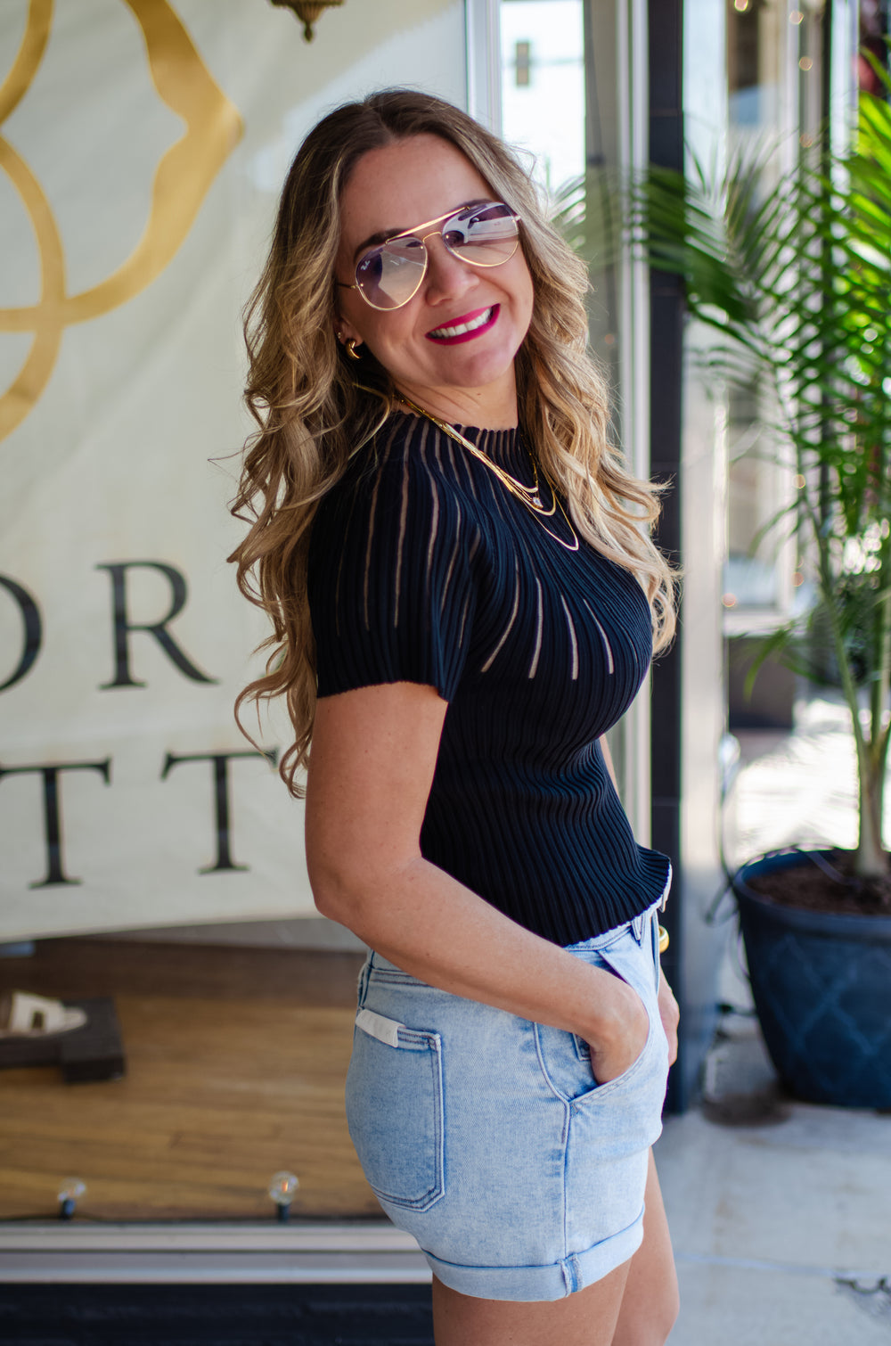 Take Me Out Bow Front Textured Top in Black