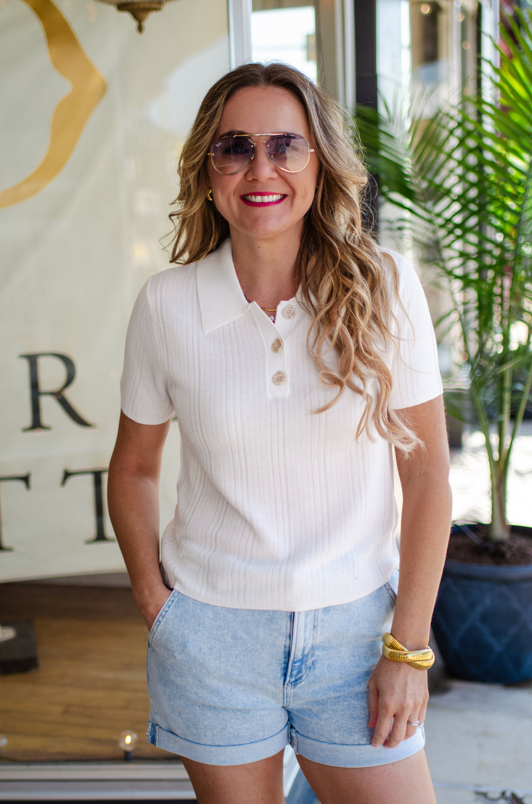 Perfect Day Button Down Blouse in Cream