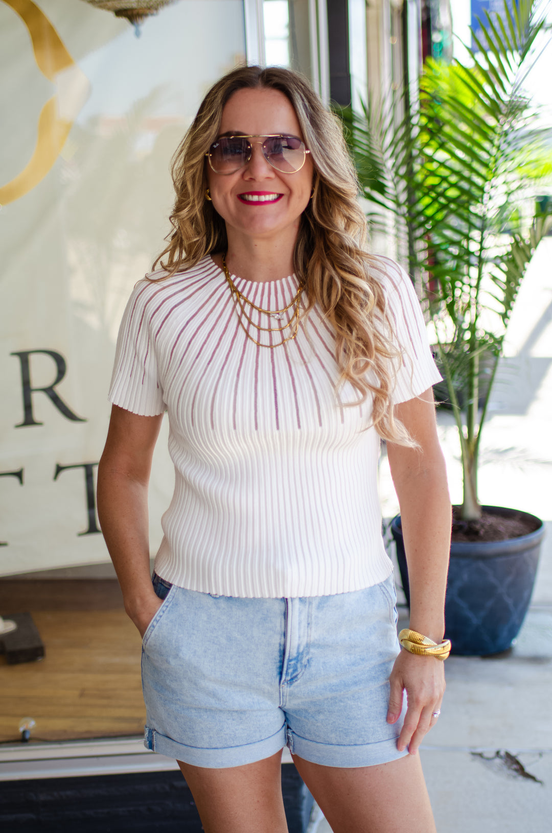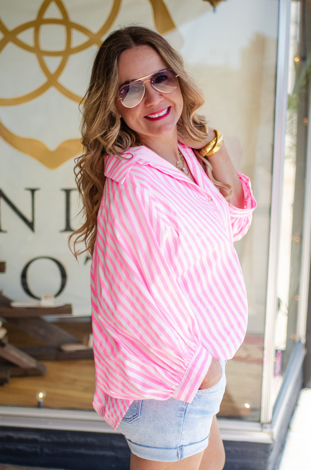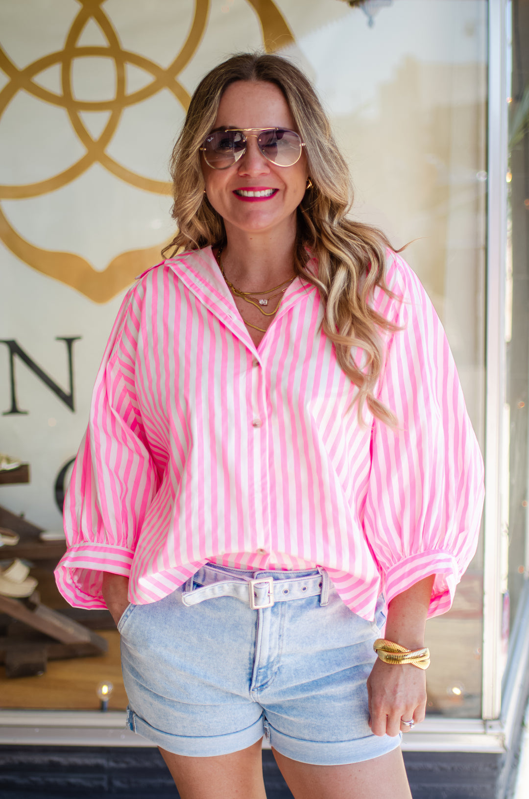 Make Your Moment Stripe Champagne Button Up Top