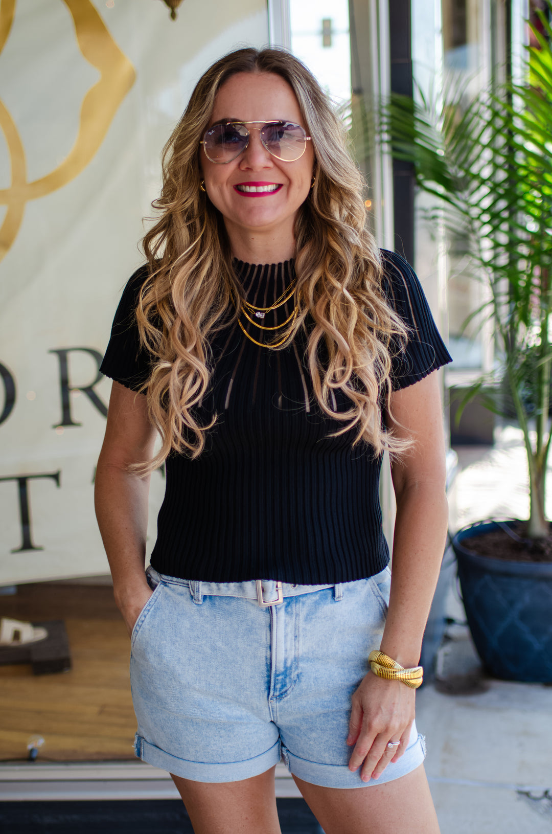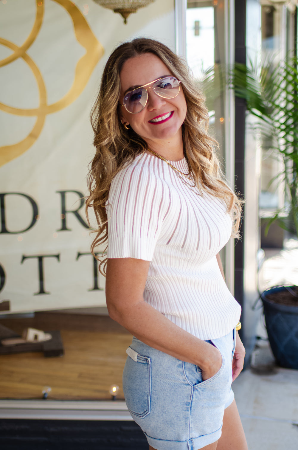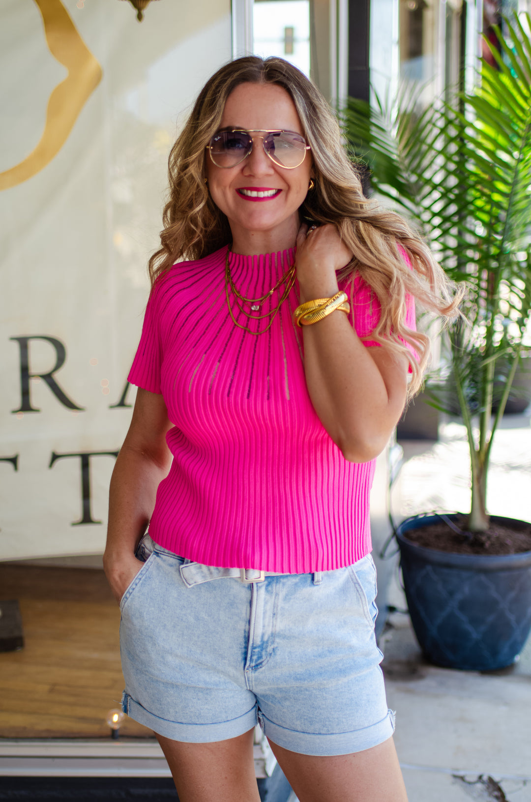Make Your Moment Stripe Champagne Button Up Top
