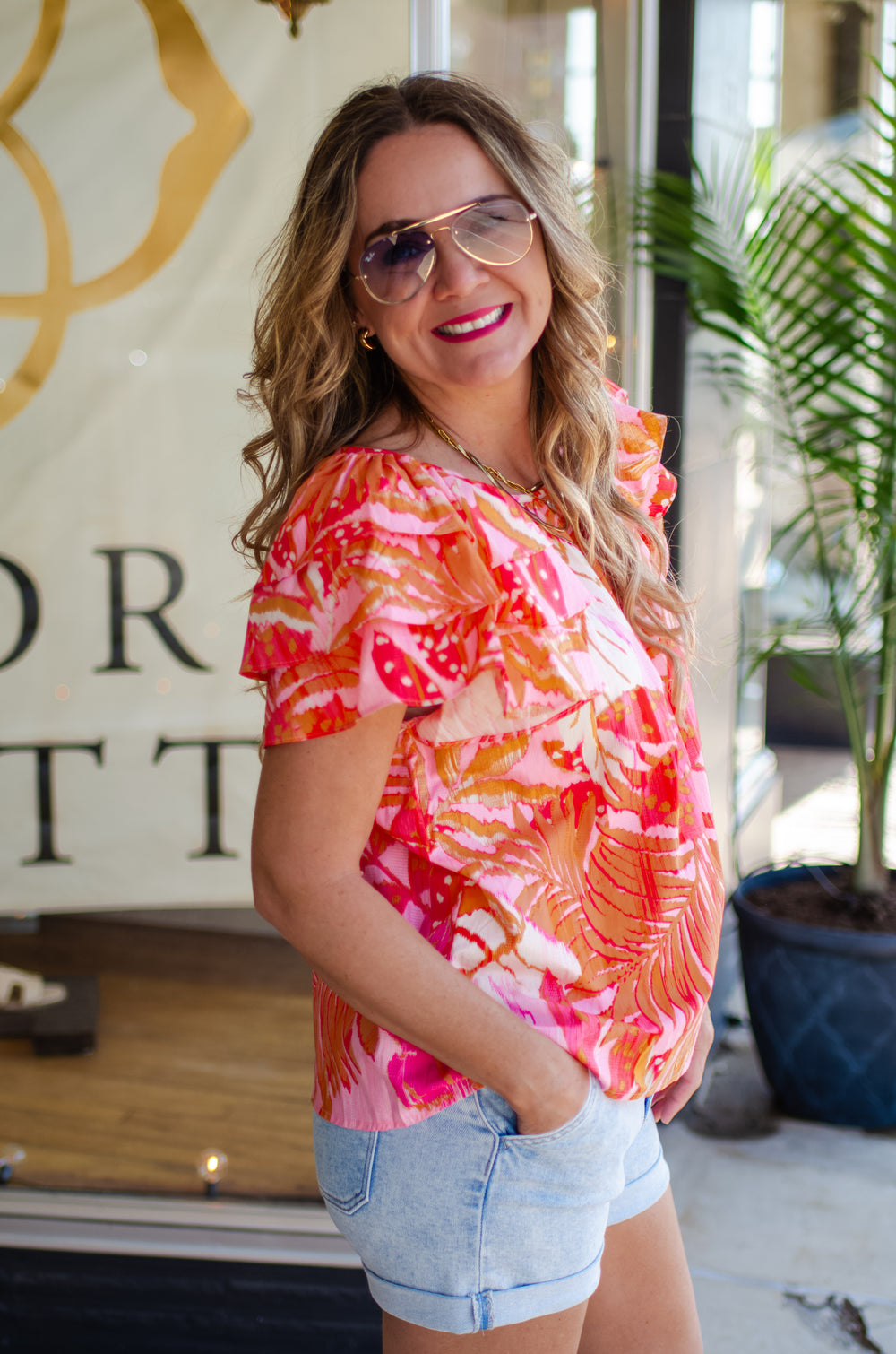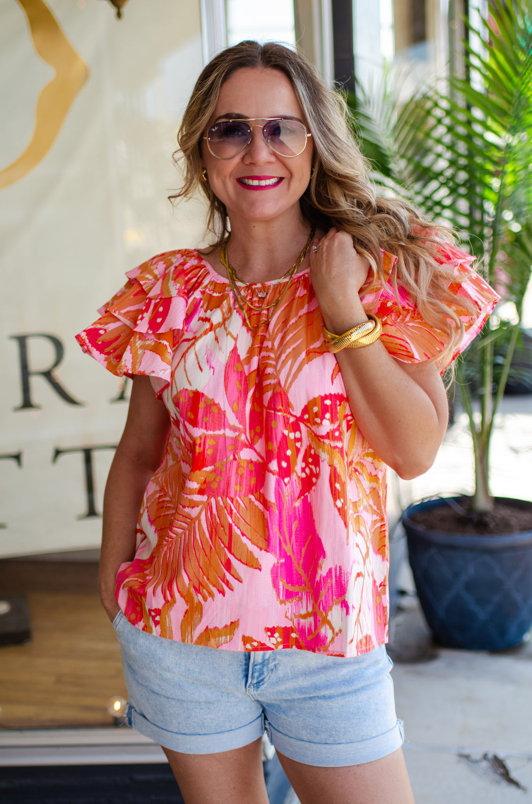 Floral Fields Floral Front Long Sleeve Top