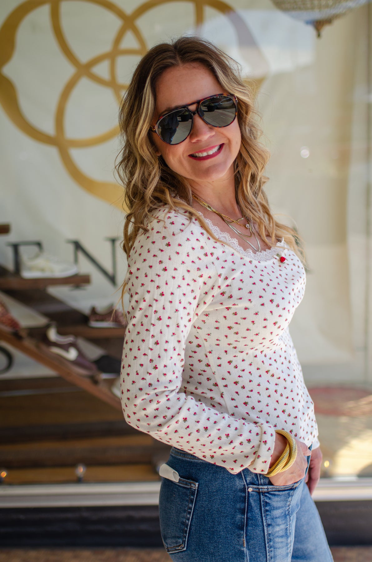 Bring a burst of blossom to your wardrobe with the Floral Fields Floral Front Long Sleeve Top. Made from soft, breathable cotton, this comfy and cute top wraps you in cozy charm while the vibrant floral print brightens every day. Perfect for playful days out or relaxed weekends in, it’s your new go-to for effortless style with a cheerful twist.