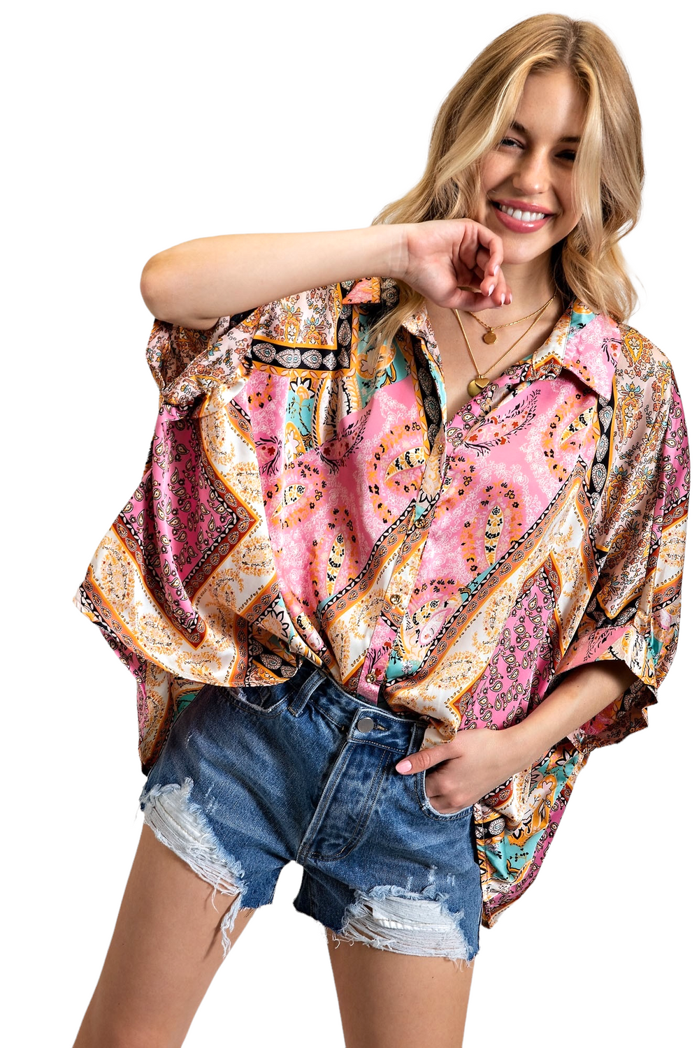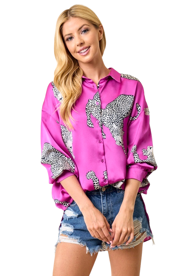 Weekend Romance Silky Button Down Blouse in Burgundy