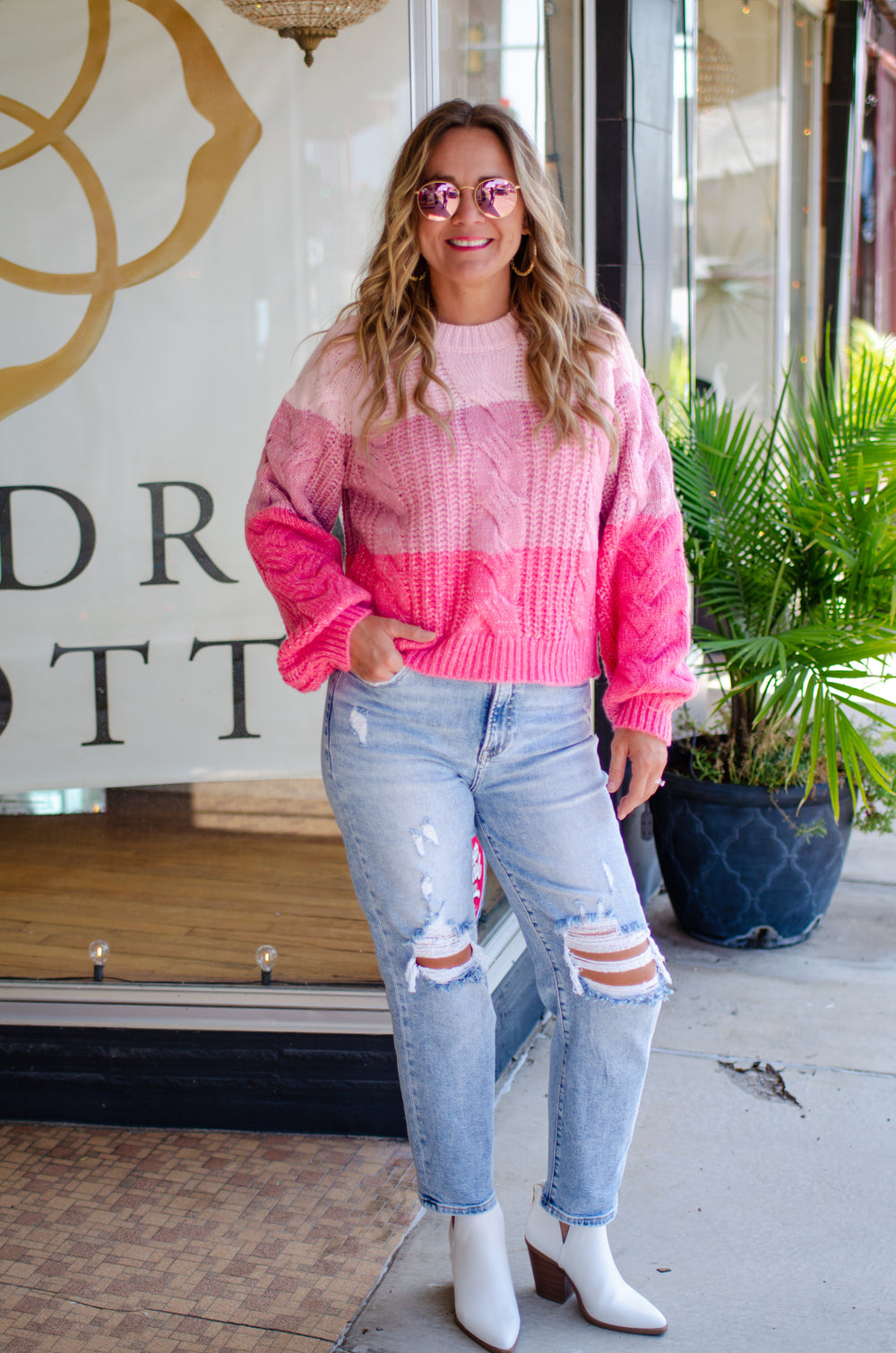 Sheer Joy Ribbed Round Neckline Top in Hot Pink
