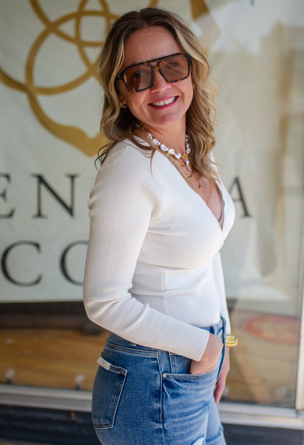 Slip into the Turn Me Around Twist Front Ribbed Bodysuit in Cream and watch your style do a playful spin. Crafted from stretchy camel-colored fabric, it hugs your curves with a flattering twist front design. The thong closure ensures a smooth, seamless look under any outfit—perfect for when you want to feel confident and effortlessly chic all day long.