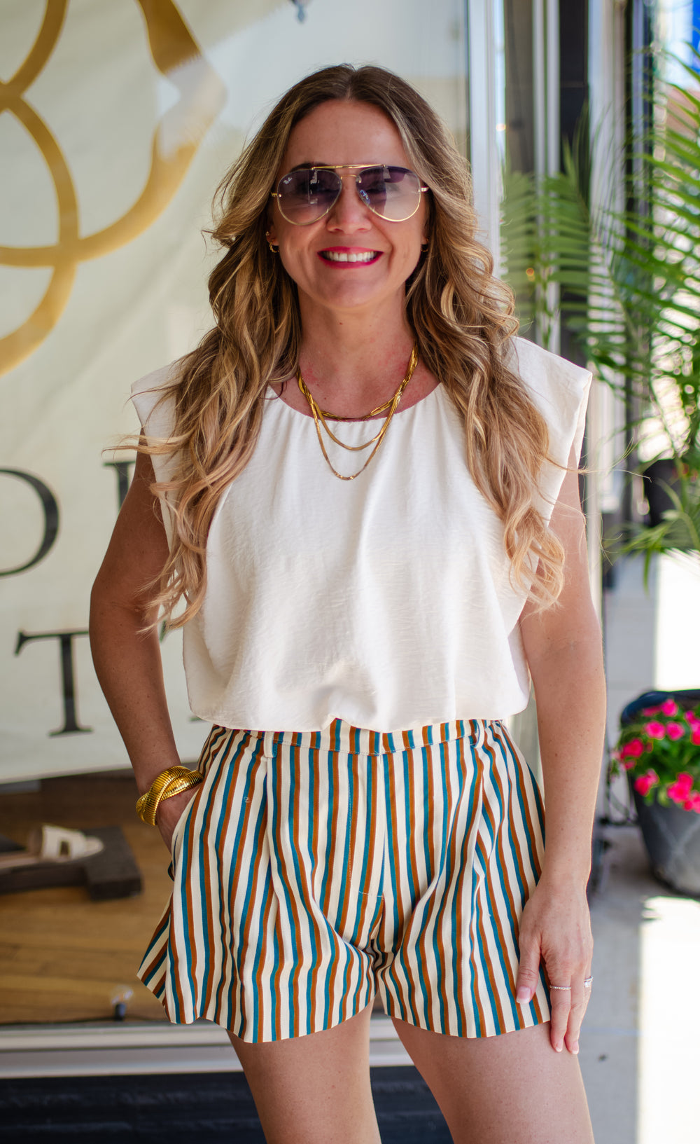 Moment In Time Yellow & Cyan Pinstripe High Waist Shorts