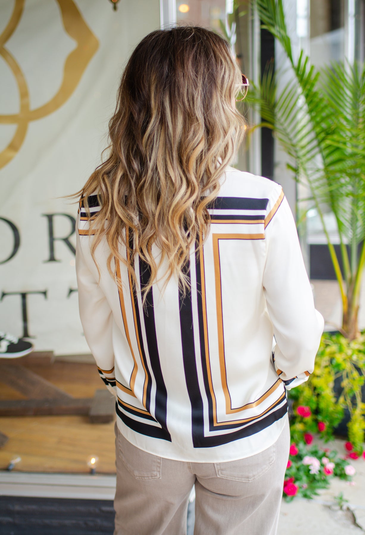 Perfectly Posh Button Down Top with Neck Scarf in Cream