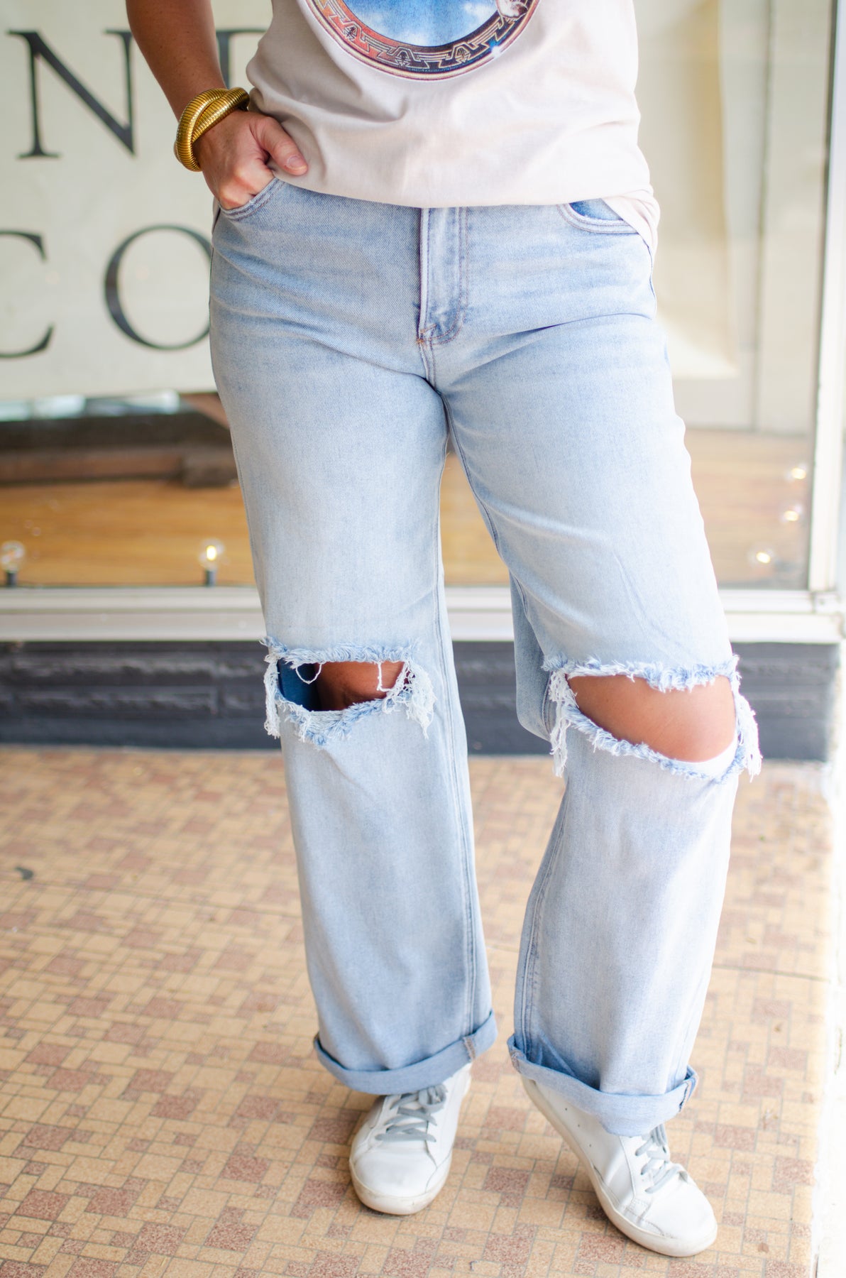 Get the perfect balance of comfort and style with our Risen Mid Rise Boyfriend Fit Cut Off Jeans in Light Wash! The distressed knees add a touch of edginess to the classic boyfriend fit. Rock your new favorite pair of jeans all season long.