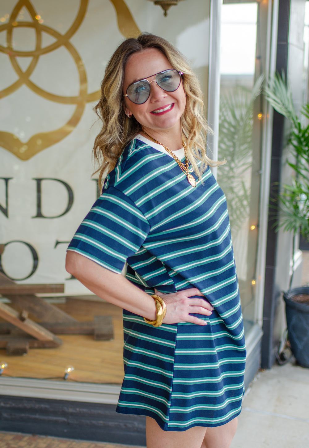 Casual Chic Navy Stripe Skirt Dress in Navy