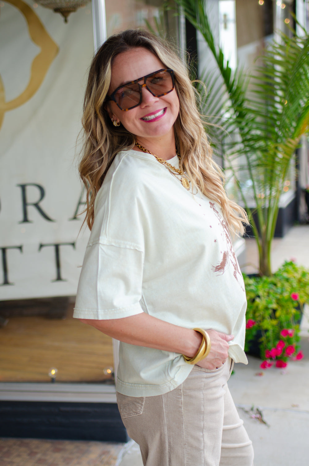 Beverly Hills Social Club Oversized Graphic Tee in Ivory