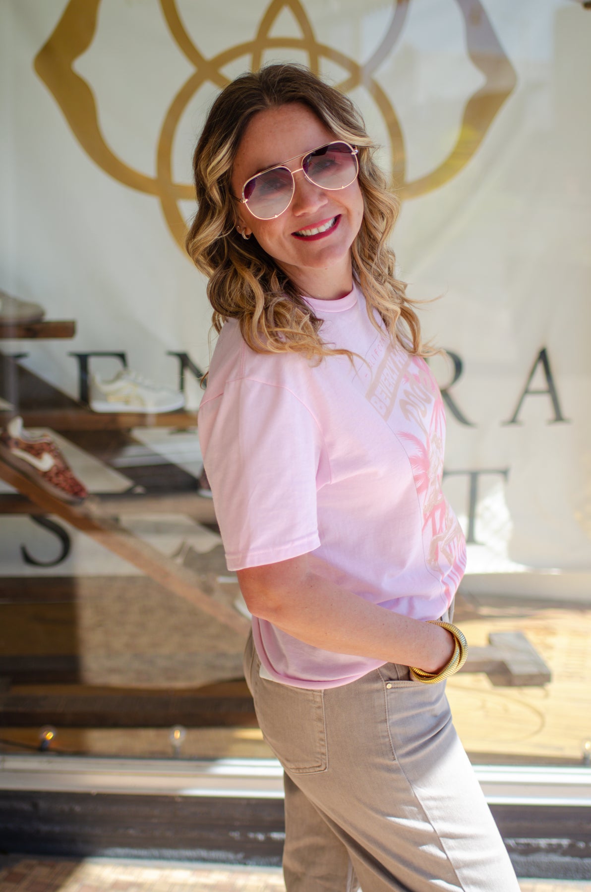Step into the spotlight with this Beverly Hills Rodeo Drive Pink Graphic Tee—your ticket to effortless West Coast glamour. Featuring a bold, eye-catching graphic that channels iconic luxury vibes, this tee pairs perfectly with your favorite jeans or styled up for a night out. Soft, comfortable fabric keeps you feeling fabulous all day long, while the vibrant pink hue makes a statement wherever you go. Perfect for fashion lovers who want to wear their aspirations.