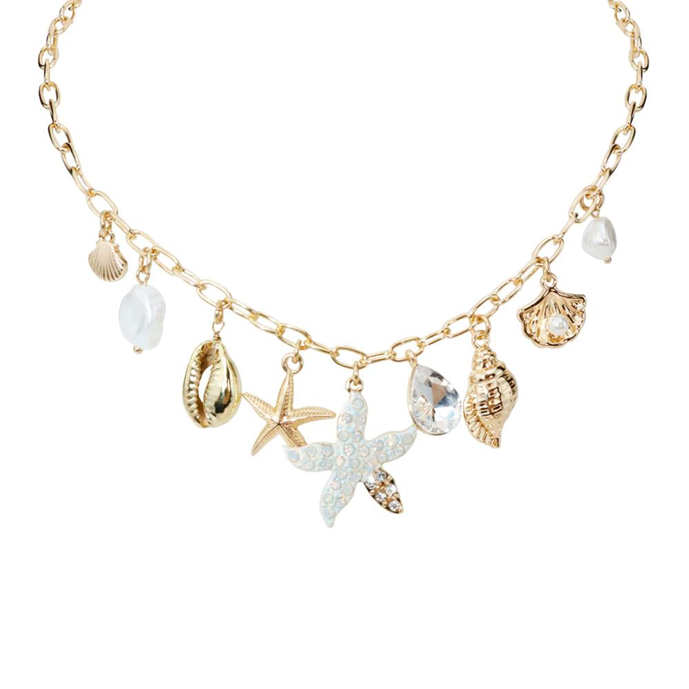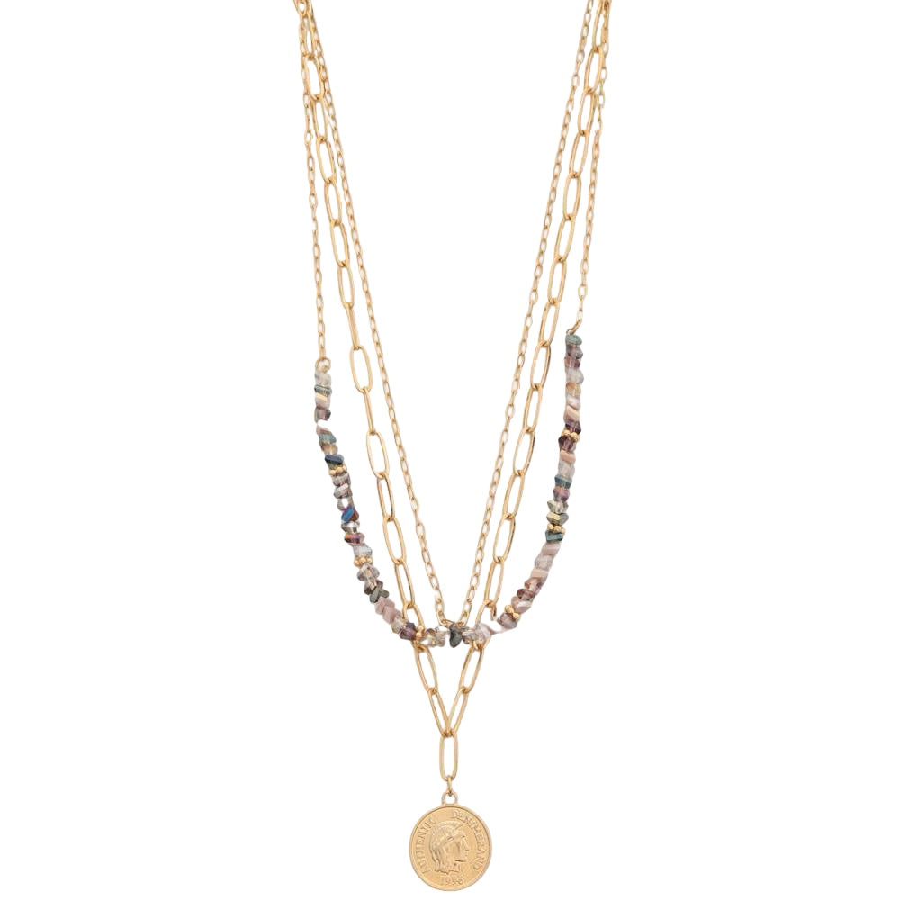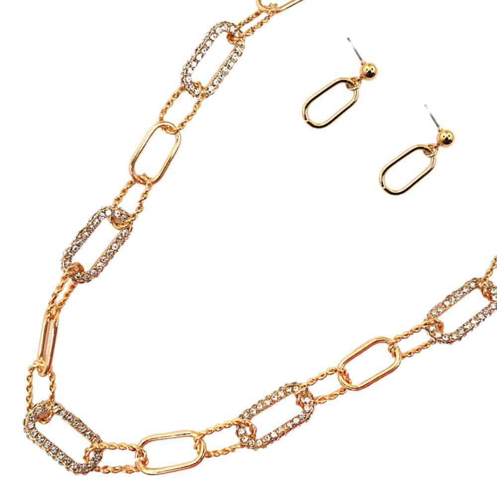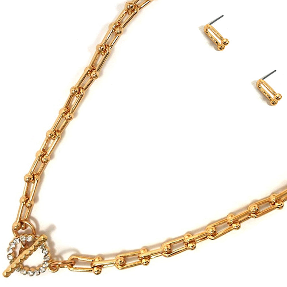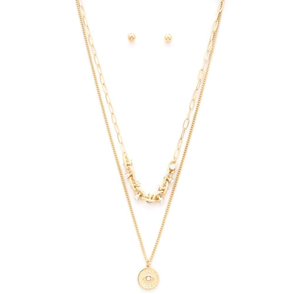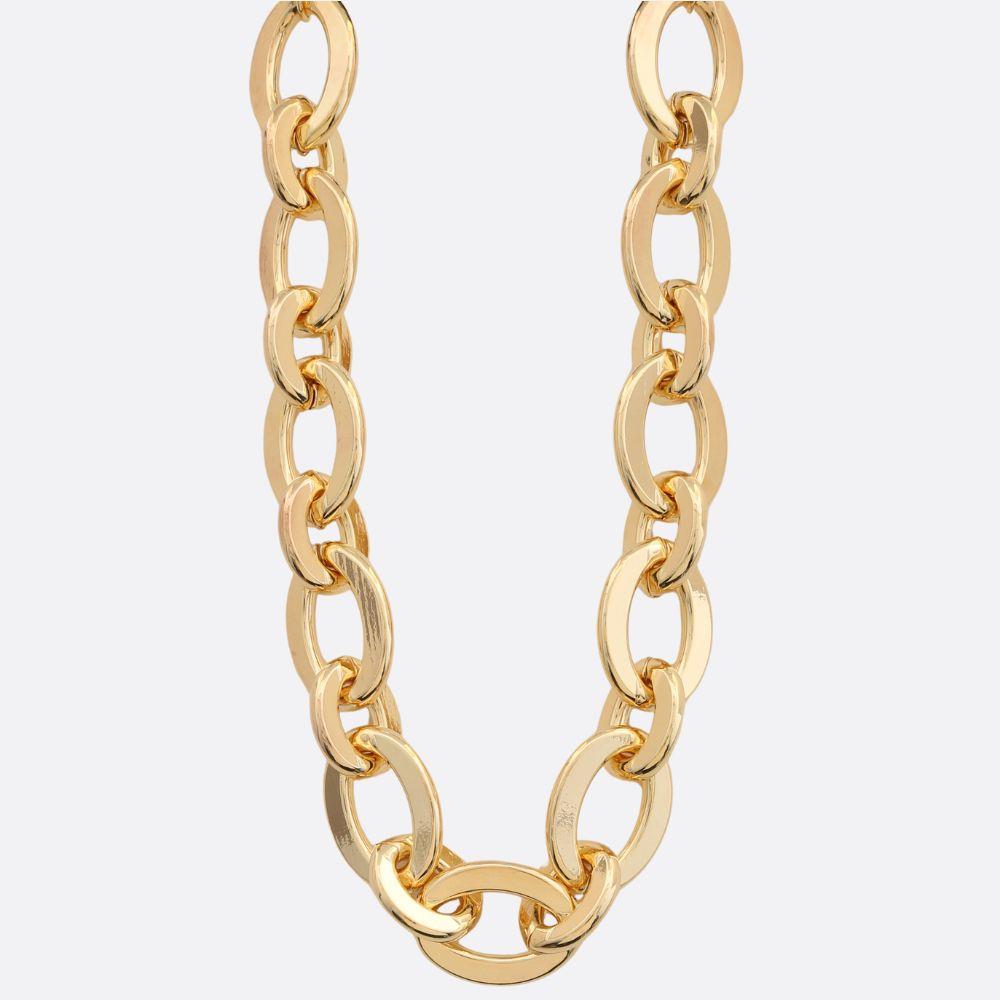 Gold Round & Oval Chain Link Shape Chain Short Necklace