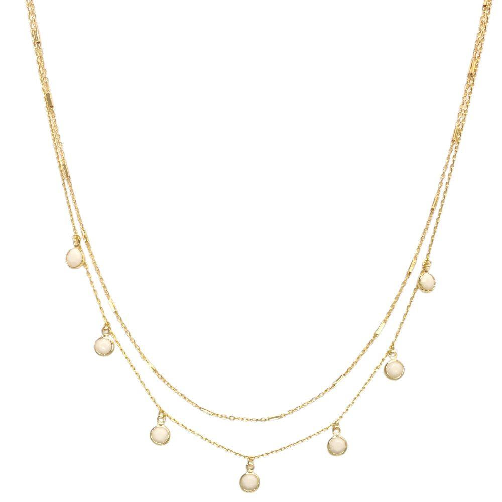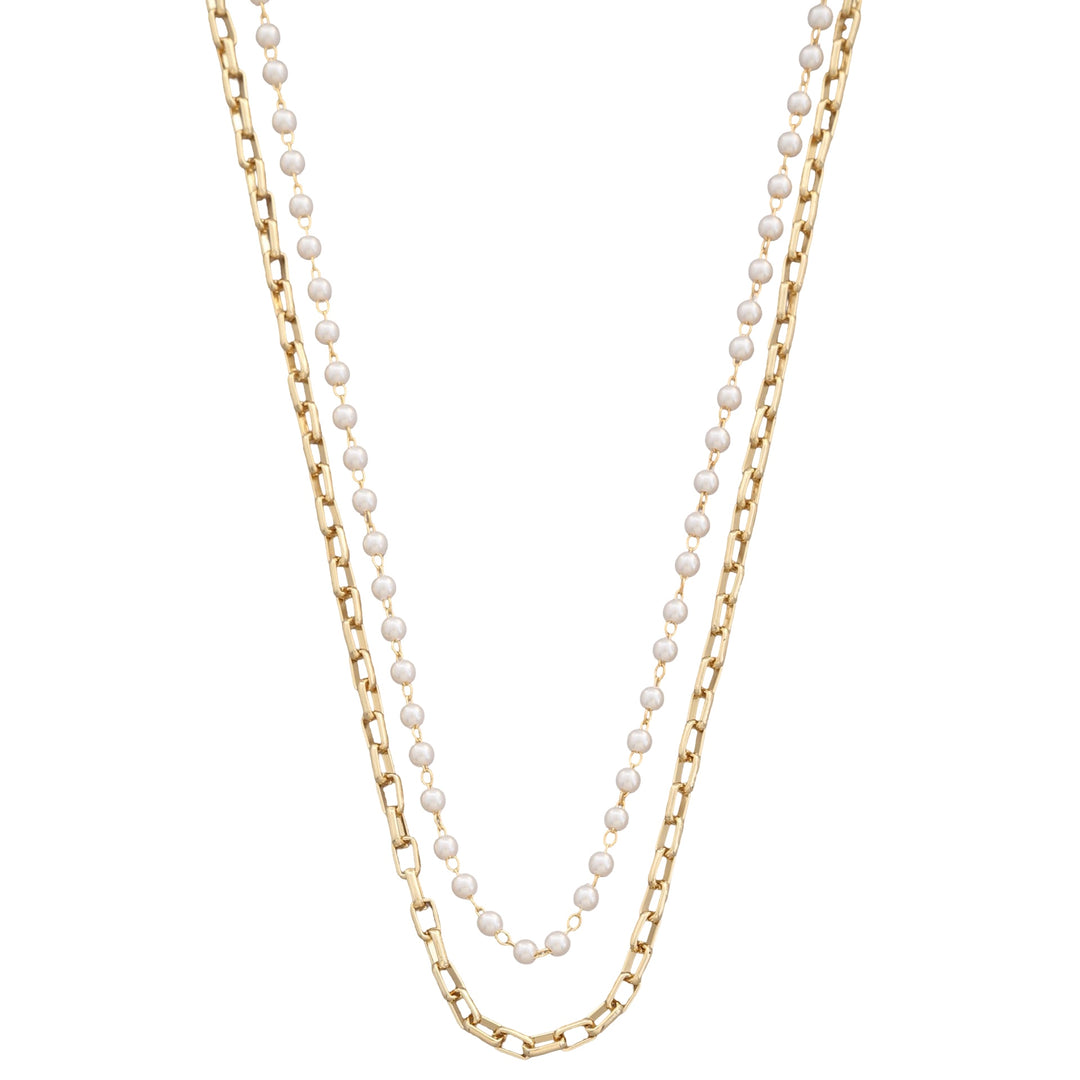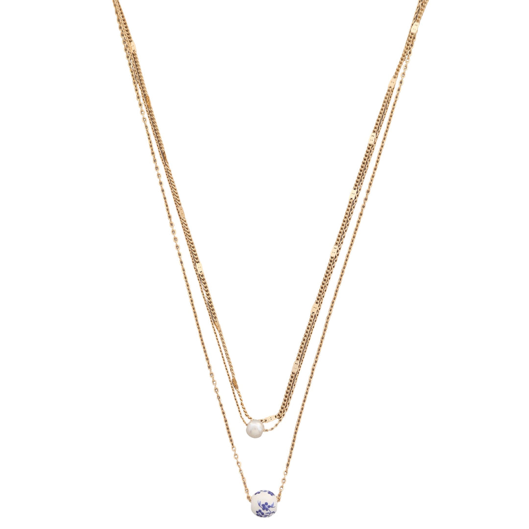 Brown Acetate Beaded Long Oval Link Gold Necklace