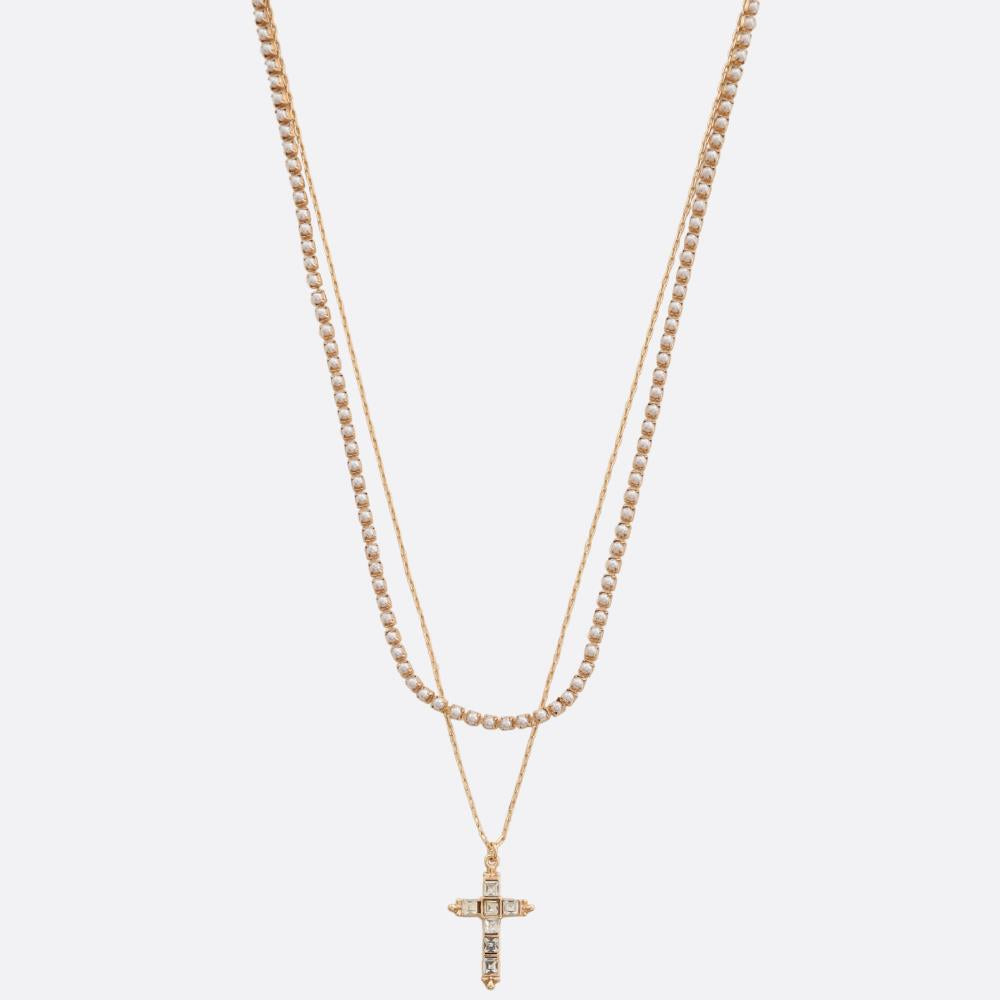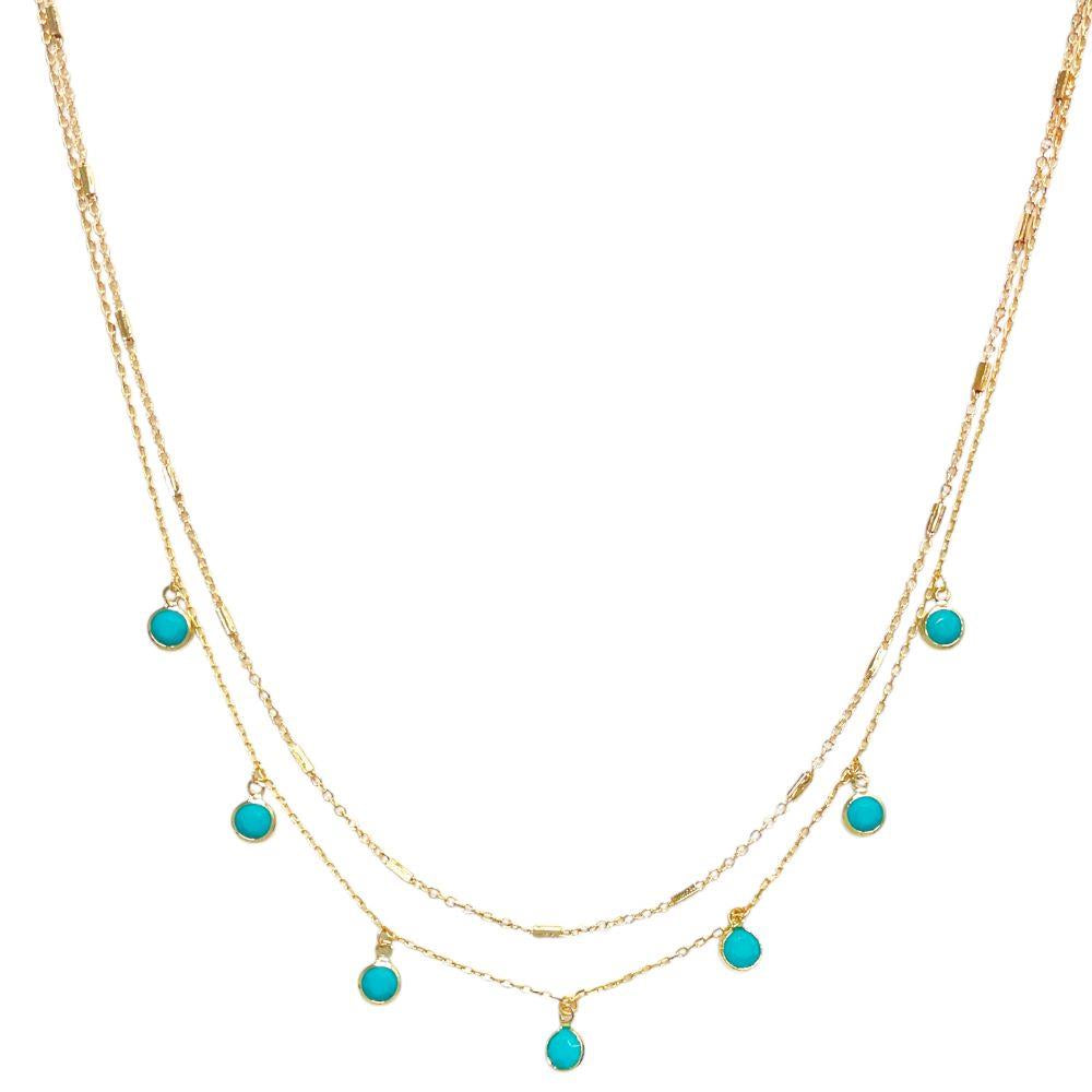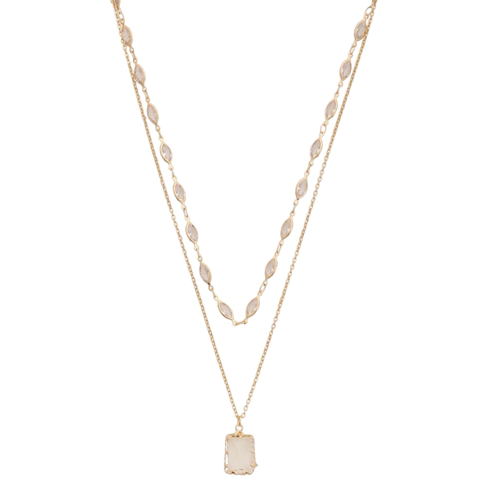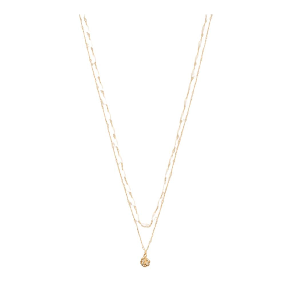 Brown Acetate Beaded Long Oval Link Gold Necklace