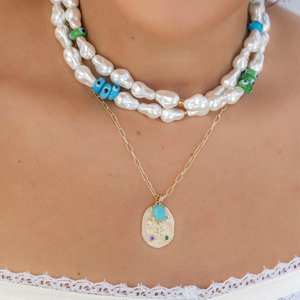 Luxe Indie Sun & Pearl Chain Necklace 18K Gold Plated
