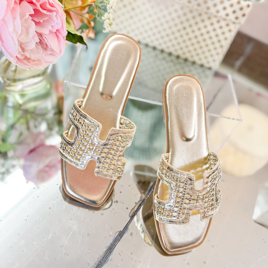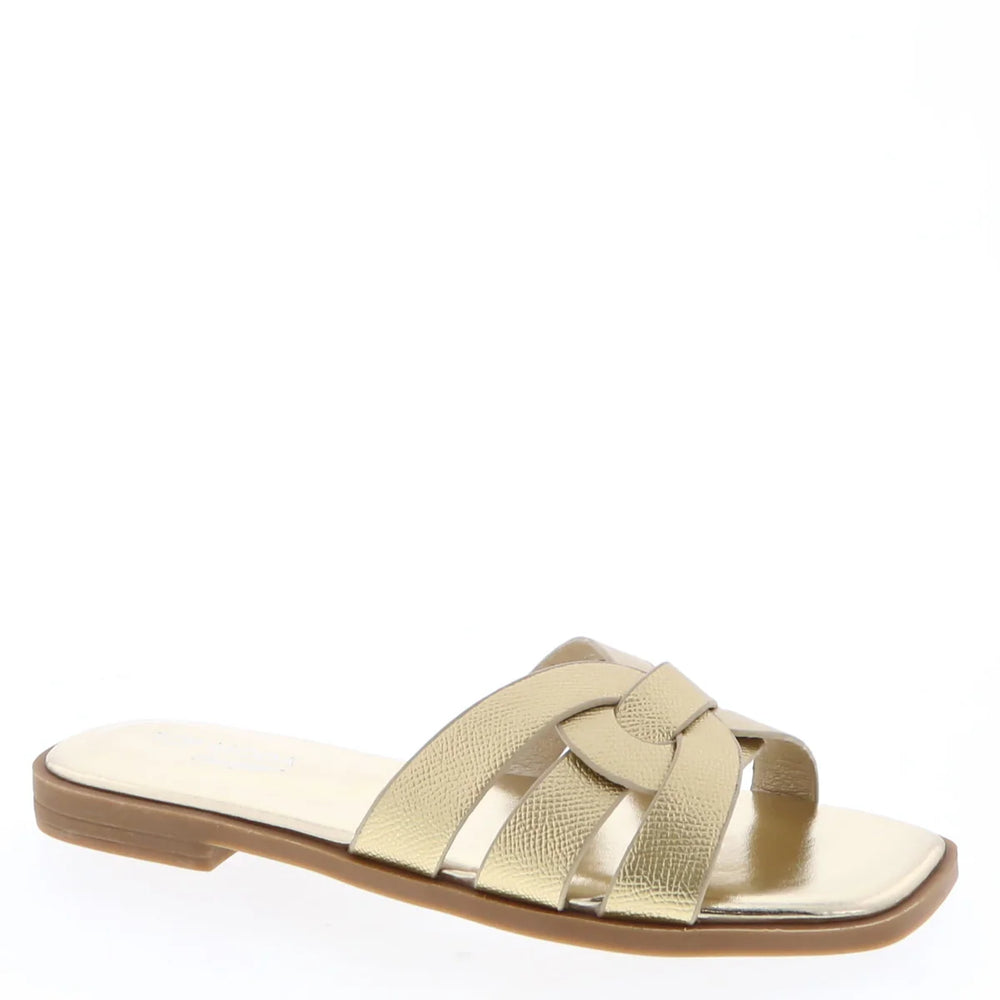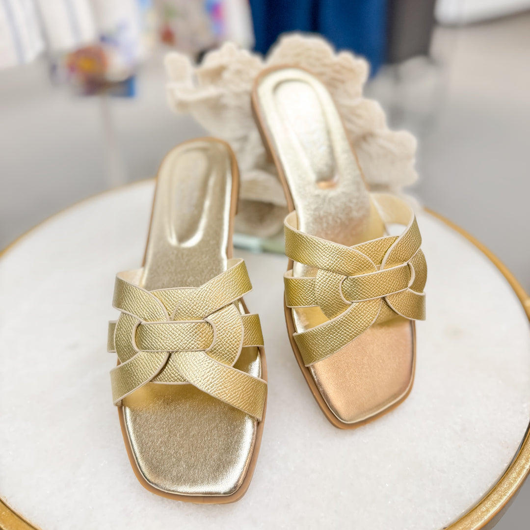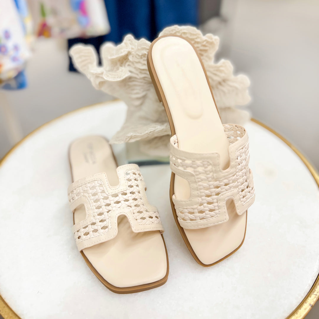 Elle Ivory Linen Gold Buckle Slide Sandal