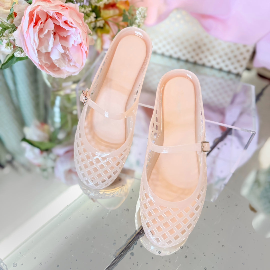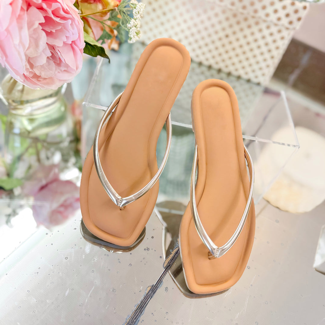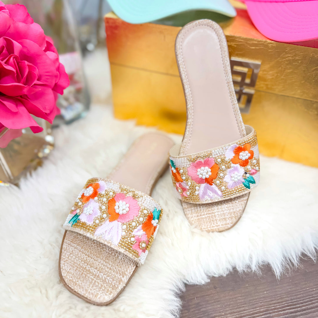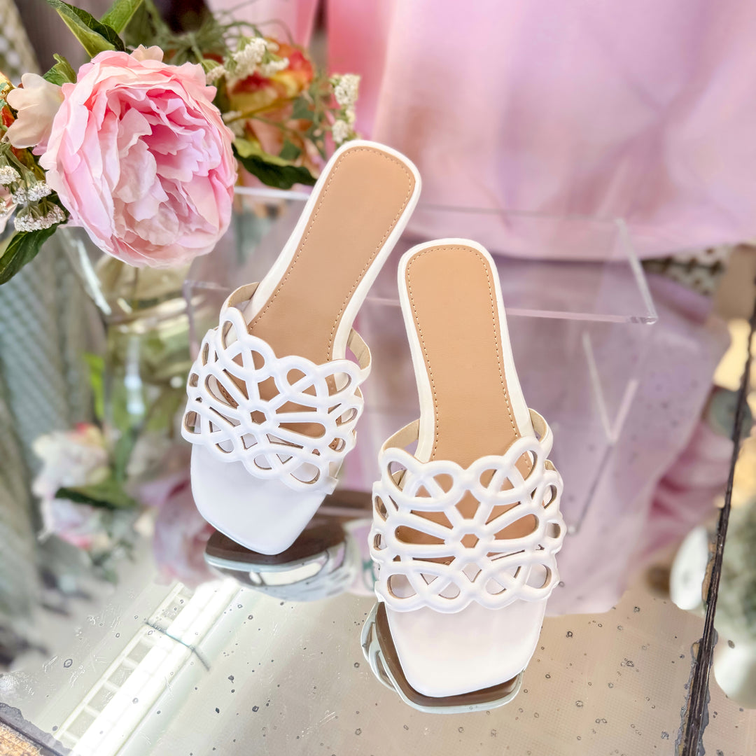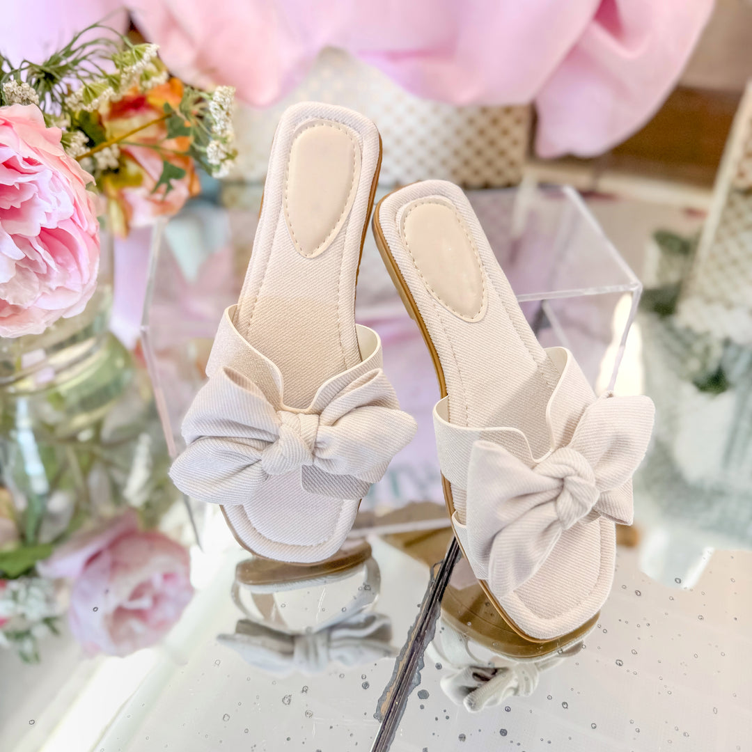 Elle Ivory Linen Gold Buckle Slide Sandal