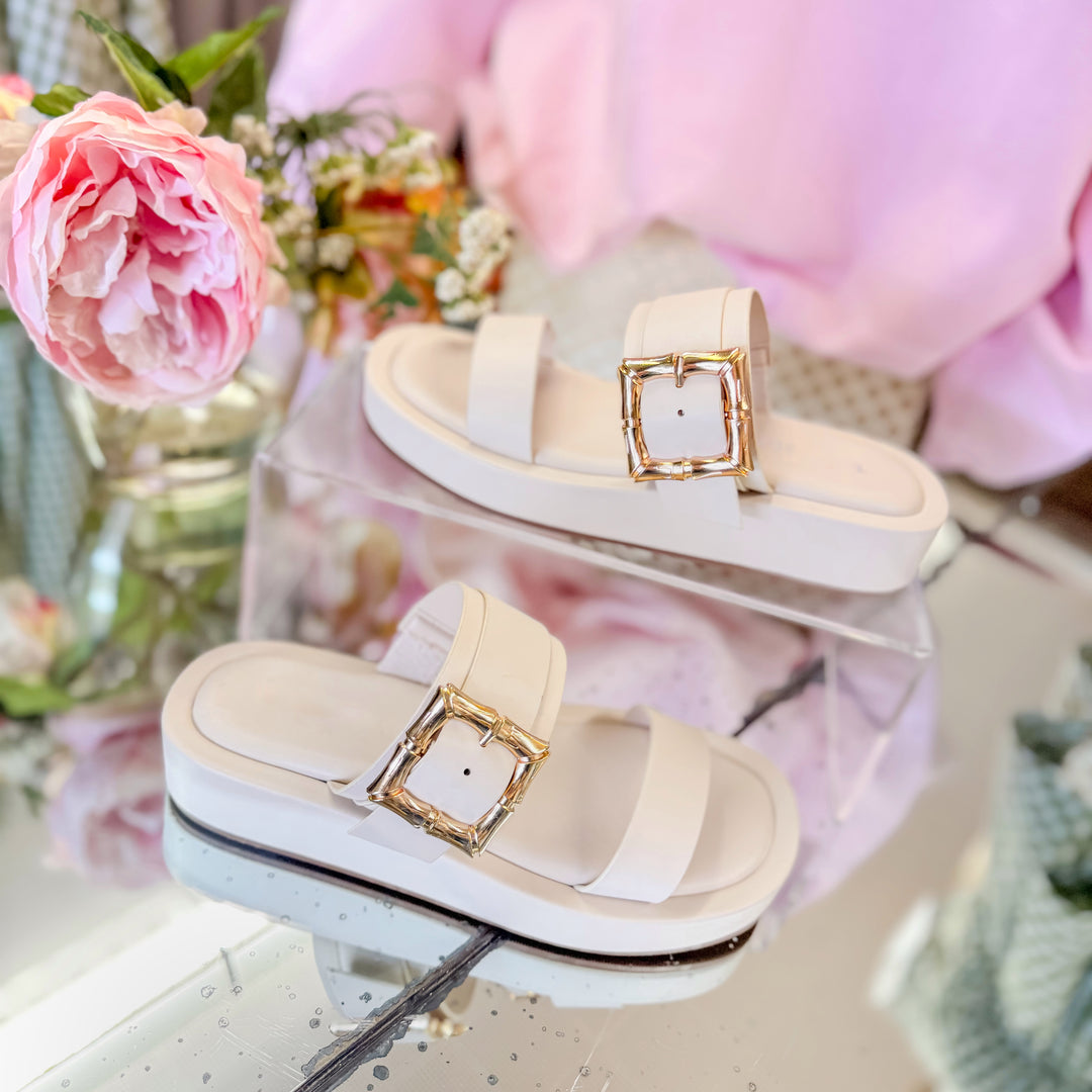 Julia Double Strap Platform Sandal with Gold Buckle in Ivory