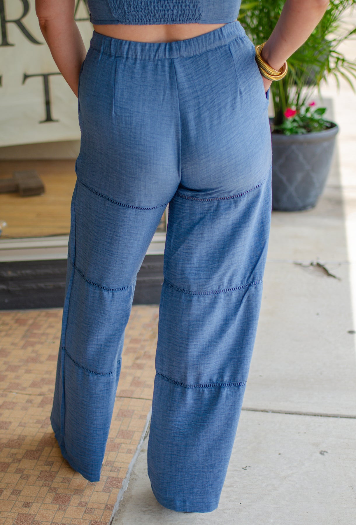 Meet your new favorite pants: the Day Date High Rise Crochet Detail Wide Leg Chambray Pants! These stylish pants bring laid-back vibes with a detail of crochet charm. Perfect for a brunch or , they’ll have you feeling as breezy as a summer day.