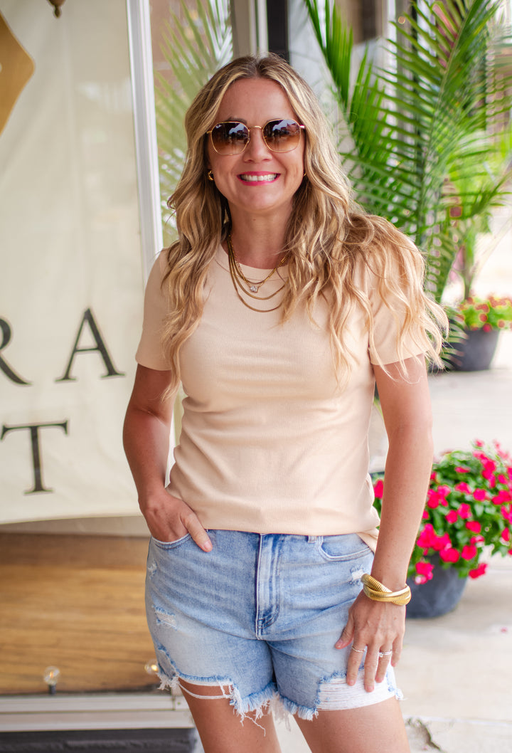 Get ready to rock the ribbed look with our Everyday Top Black fitted top! The classic crew neck and short sleeve design is perfect for any casual or dressy occasion. Show off your curves and make a statement in this sleek and stylish black top.