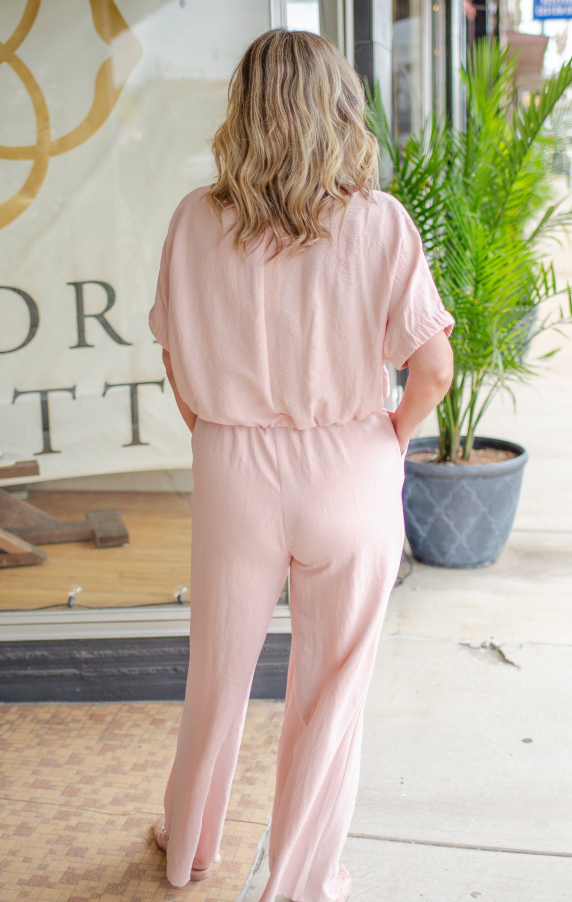 Effortless comfort meets timeless style with the Summer Solstice Pull On Wide Leg Pant in blush. Crafted from buttery soft, lightweight stretch fabric, these pants feature a drawstring waistline for a customizable fit that moves with you. The wide-leg silhouette offers a classic, flattering look perfect for any season. Slip them on and enjoy all-day comfort without compromise.