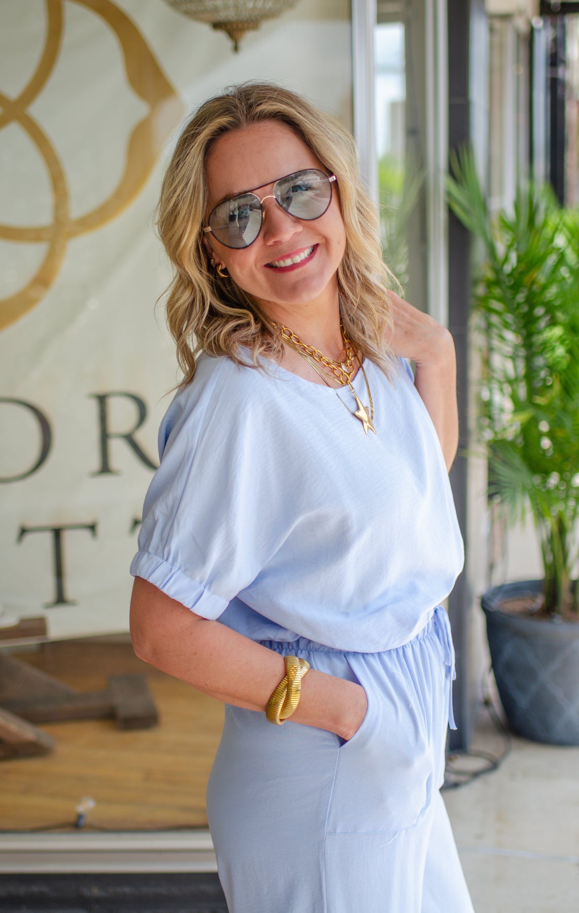 Effortless summer style meets comfort in this powder blue dolman sleeve top. The relaxed dolman sleeves drape beautifully while the bubble hem adds playful dimension to your silhouette. A stretchy waistline ensures a flattering fit all day long, and the classic round neckline keeps the look timeless and versatile. Perfect for warm weather layering or wearing solo.