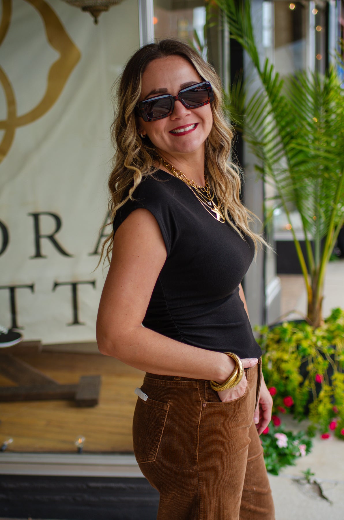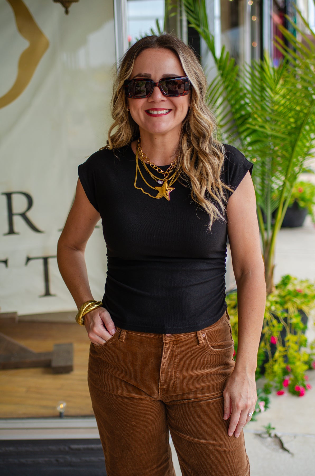 Introducing the Chic Basics Top in Black—proof that simple can be seriously stylish. This fitted essential features charming cap sleeves and a flattering ruched side detail that adds just enough visual interest to keep things fun. The black hue works with everything in your closet, making it the ultimate go-to for effortless layering or standalone wear. Comfortable, versatile, and undeniably cute, this top is about to become your new favorite reach-for piece.