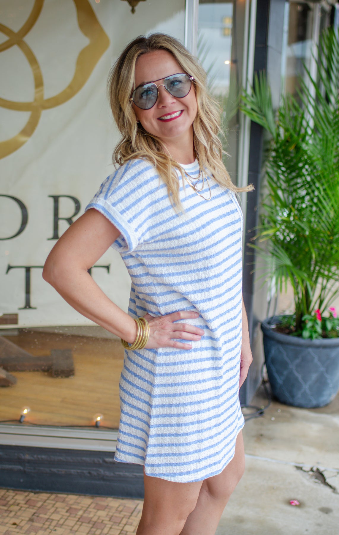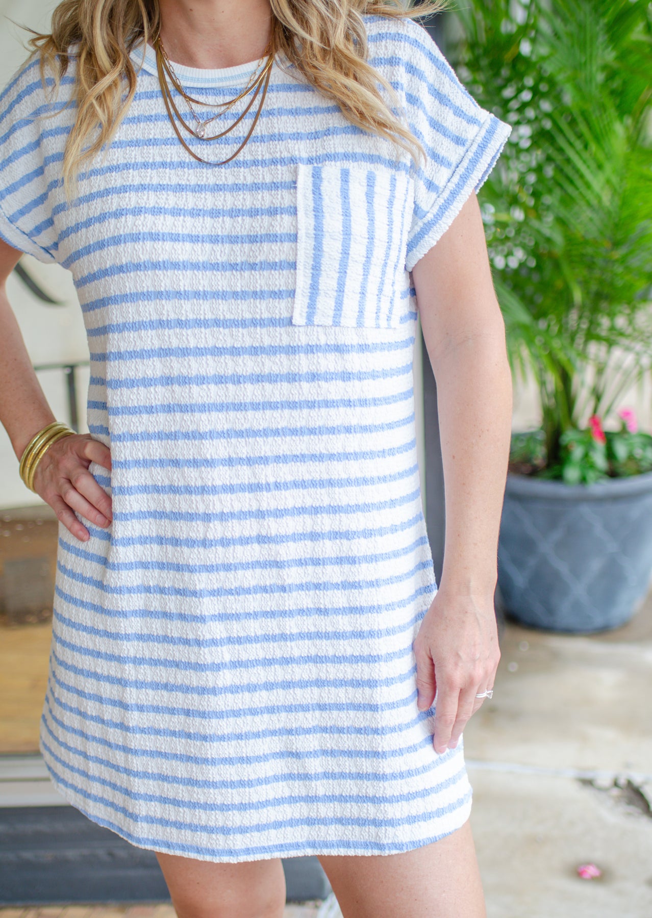 Summer Sun Textured Stripe Dress in Light Blue