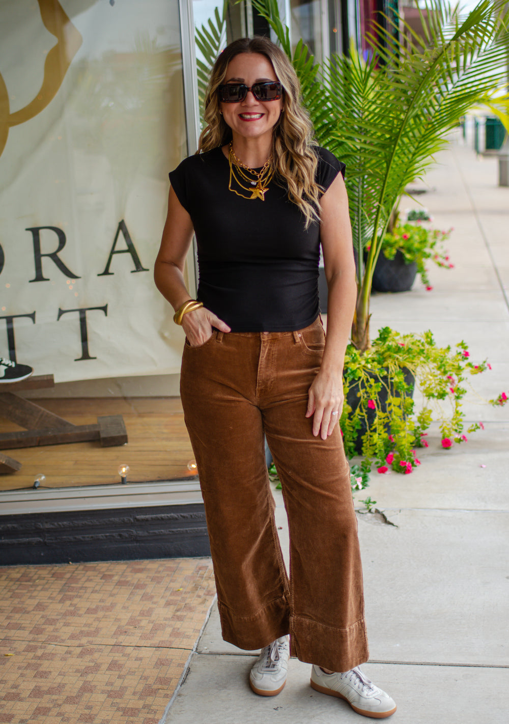 Preppy Moment Fitted Polo Top in Black with Cream Trim