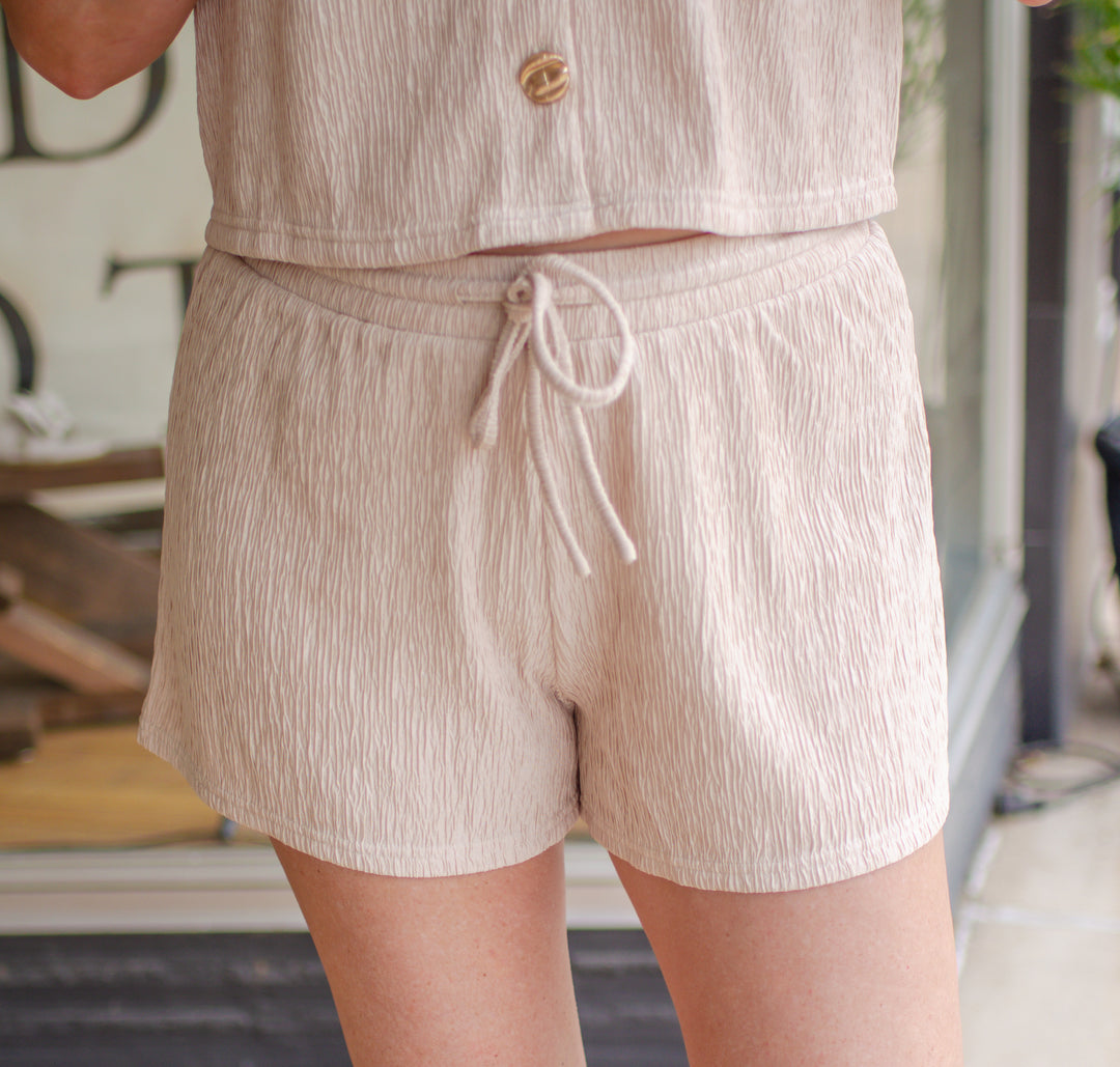 Made For You Textured Drawstring Shorts in Champagne