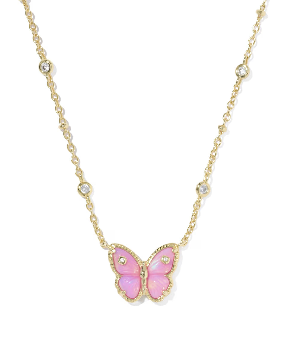 Kendra Scott Cailey Butterfly Pendant Necklace Gold Pink Opalescent