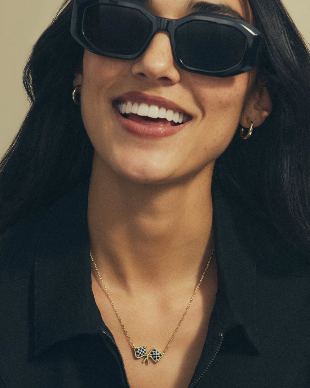 Kendra Scott Checkered Flag Pendant Necklace in Gold