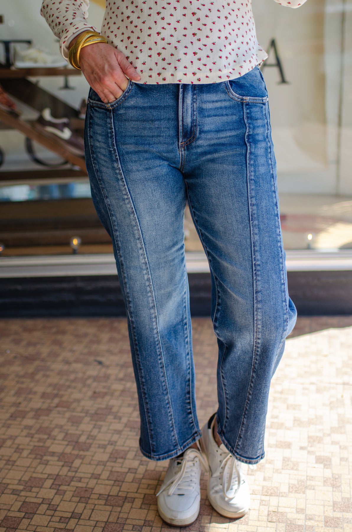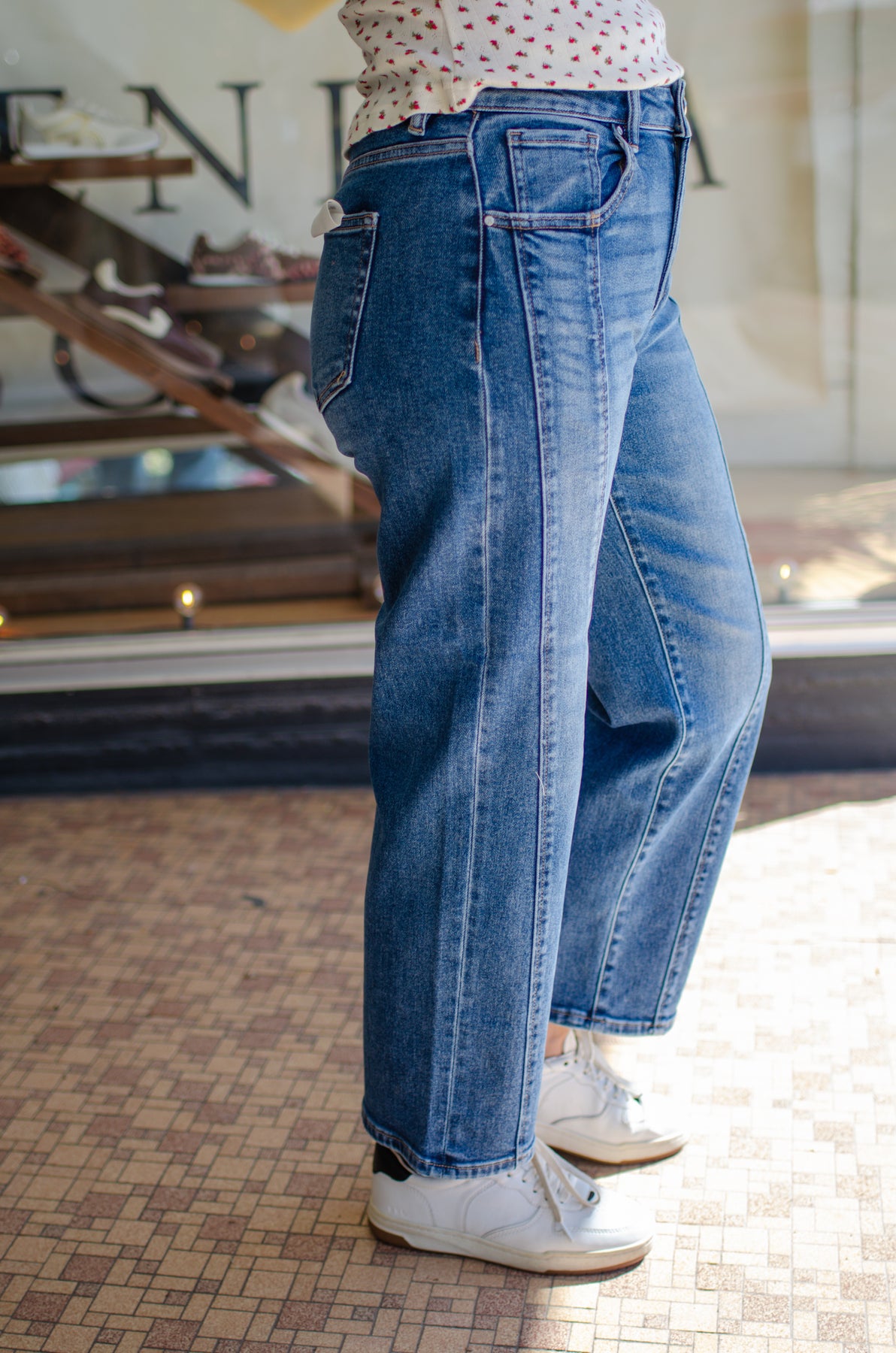 These Risen Rise Crop Straight Leg Jeans in Dark Wash bring a fresh twist to your denim game. The cropped length and straight leg cut create a flattering silhouette that pairs perfectly with your favorite sneakers or heels. Detailed with stylish seams, these jeans add subtle edge and dimension to any outfit. Comfortable and effortlessly cool, they’re ready to become your new go-to for casual days with a playful vibe.