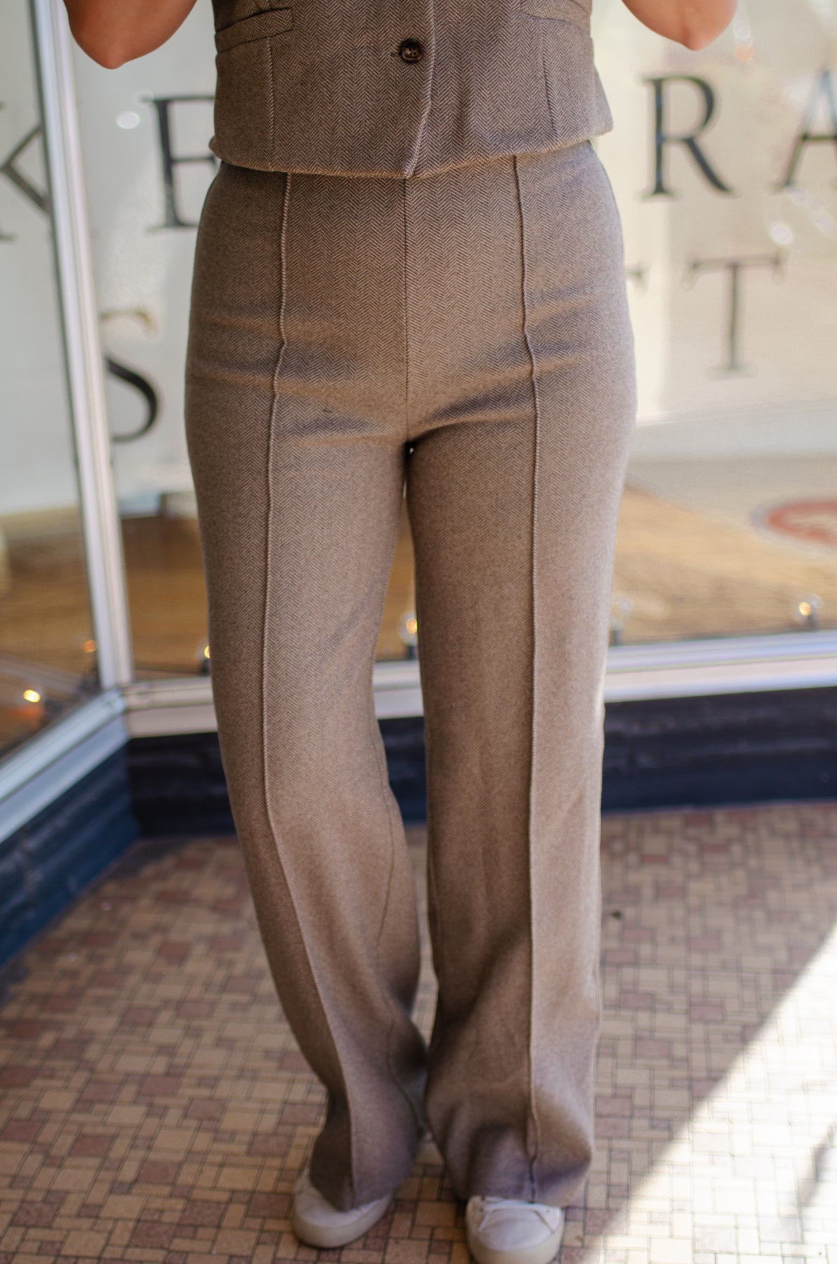 Had Me at Herringbone Mid Rise Wide Leg Pant in Brown