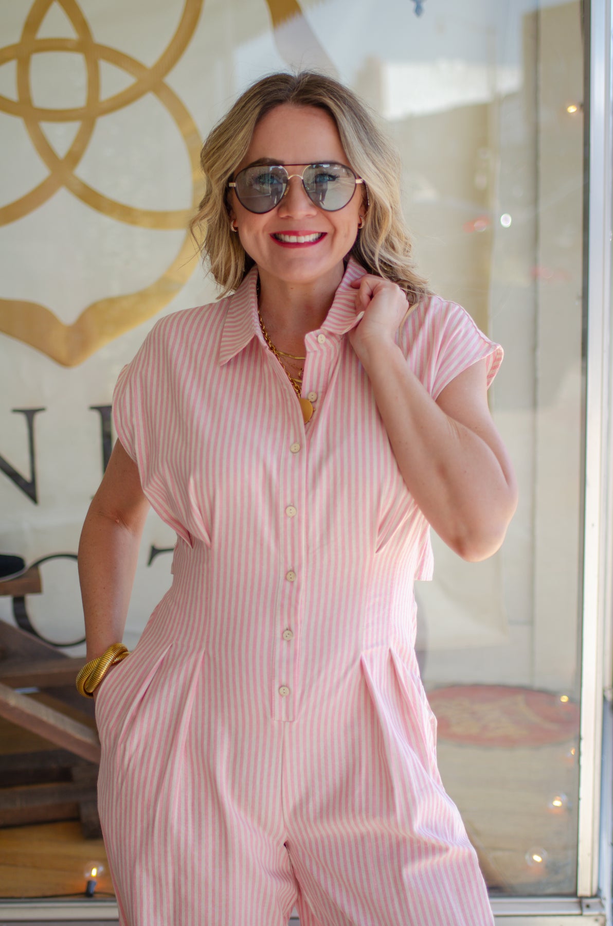 Step into the limelight with our Chic Style Pink & Cream Stripe Button Down Collared Jumper! This beauty flaunts a wide-leg silhouette that says "I'm here for a good time!" along with waistline pleats that add a dash of flair—because who doesn't love a little dimension in their day? Perfect for twirling into fun!