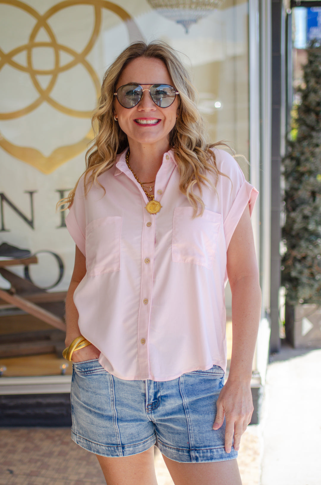 Love Like You Blush Pink Button Down Short Sleeve Top