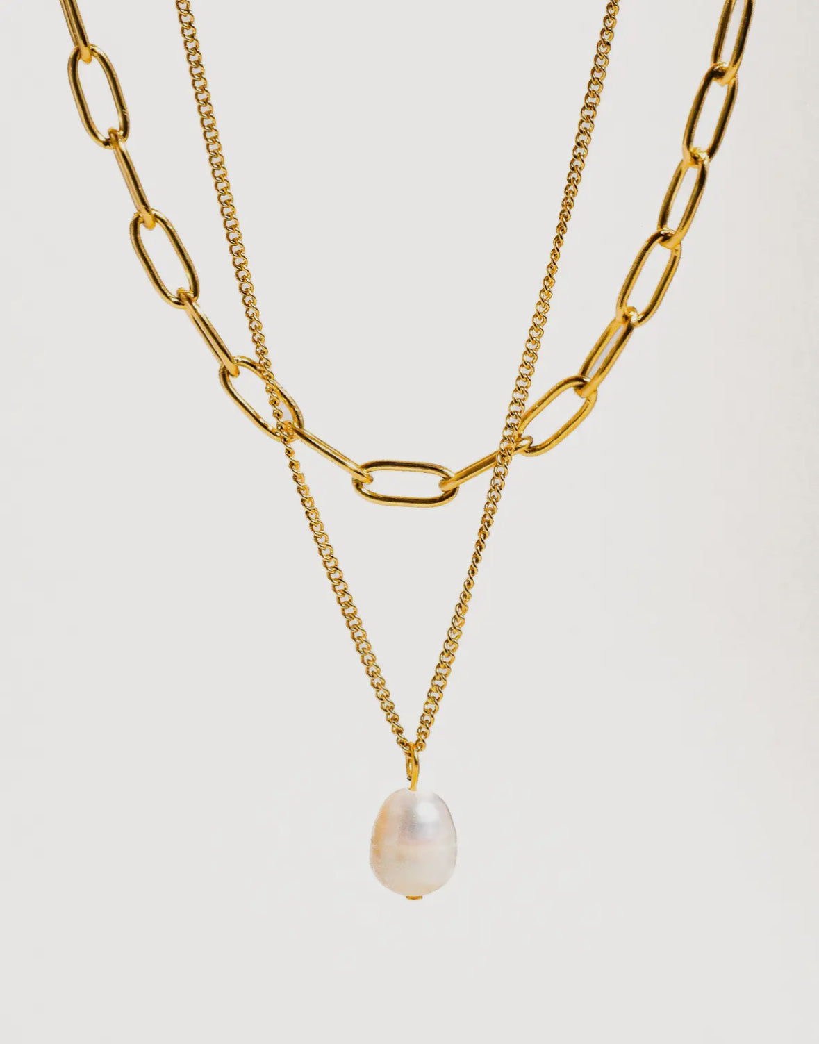 Add a touch of luxury with the Luxe Elsie necklace. The double pearl drop and paperclip chain add a stylish twist to any outfit. Made with 18K gold, it's time to elevate your jewelry collection.