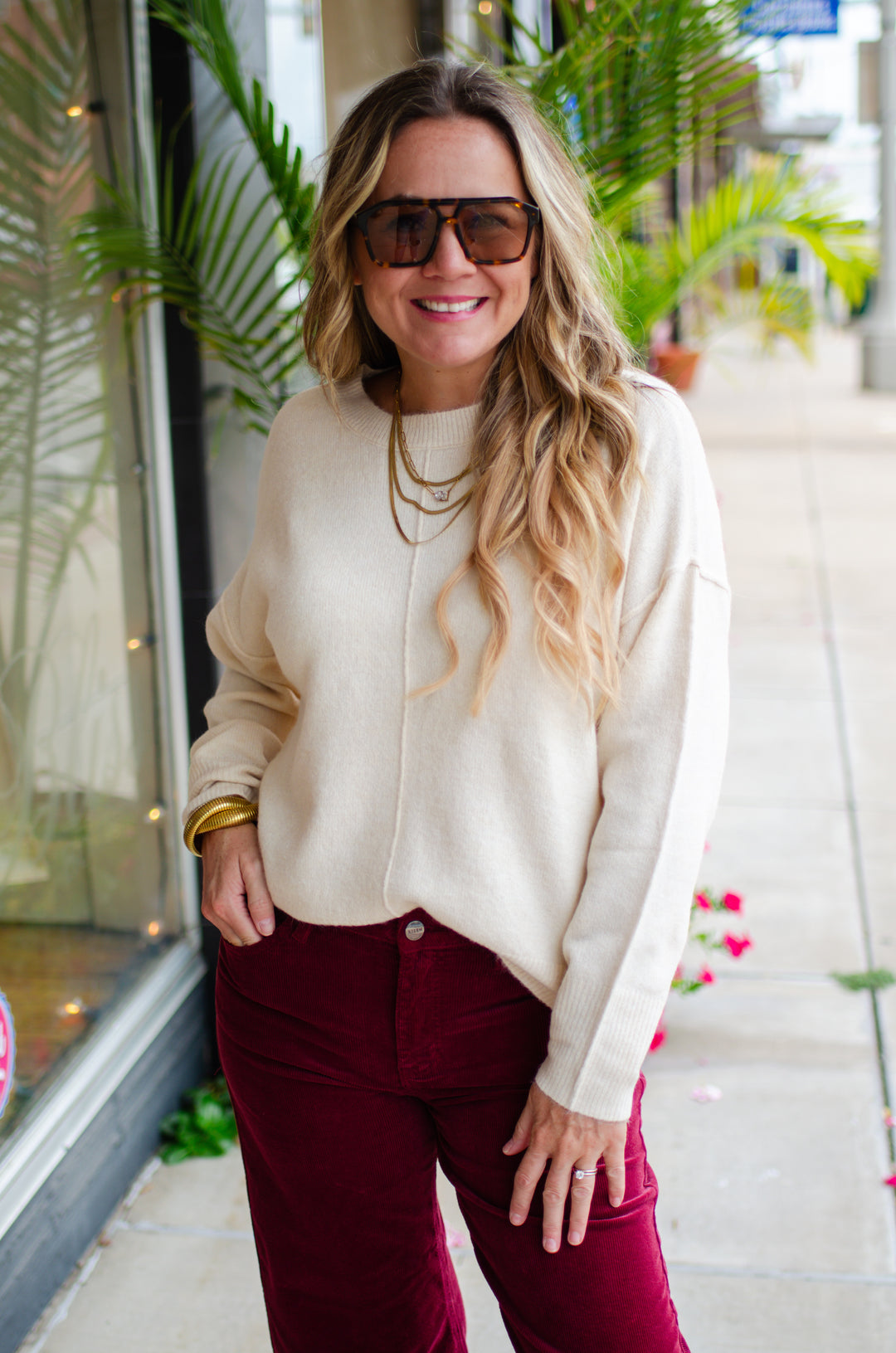 Dreaming Of Fall Crewneck Front Seam Sweater in Cream