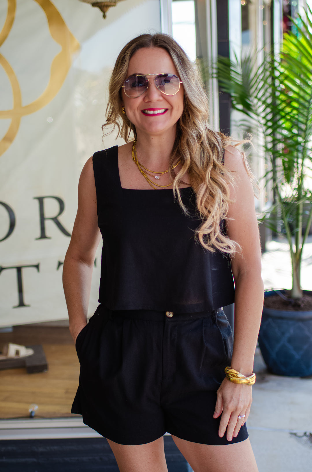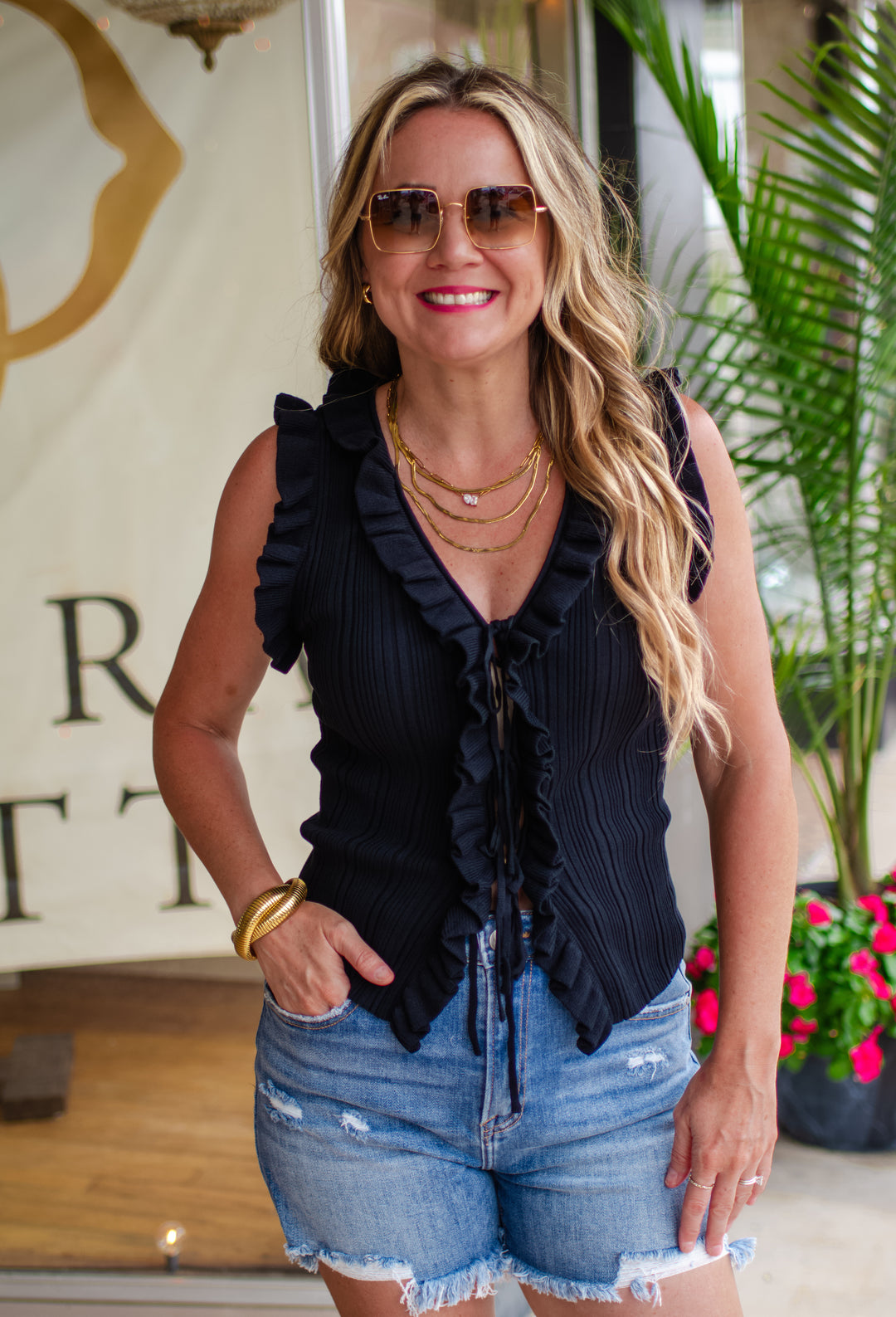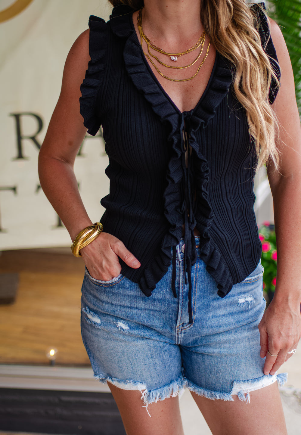 Love Like Ours Knit Tank with a Gathered Front in Black