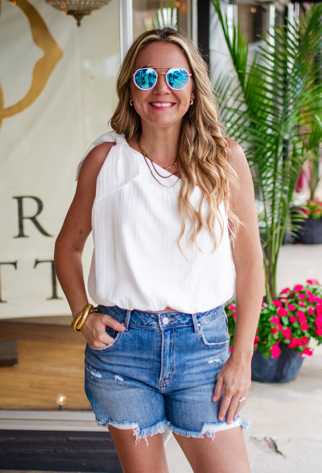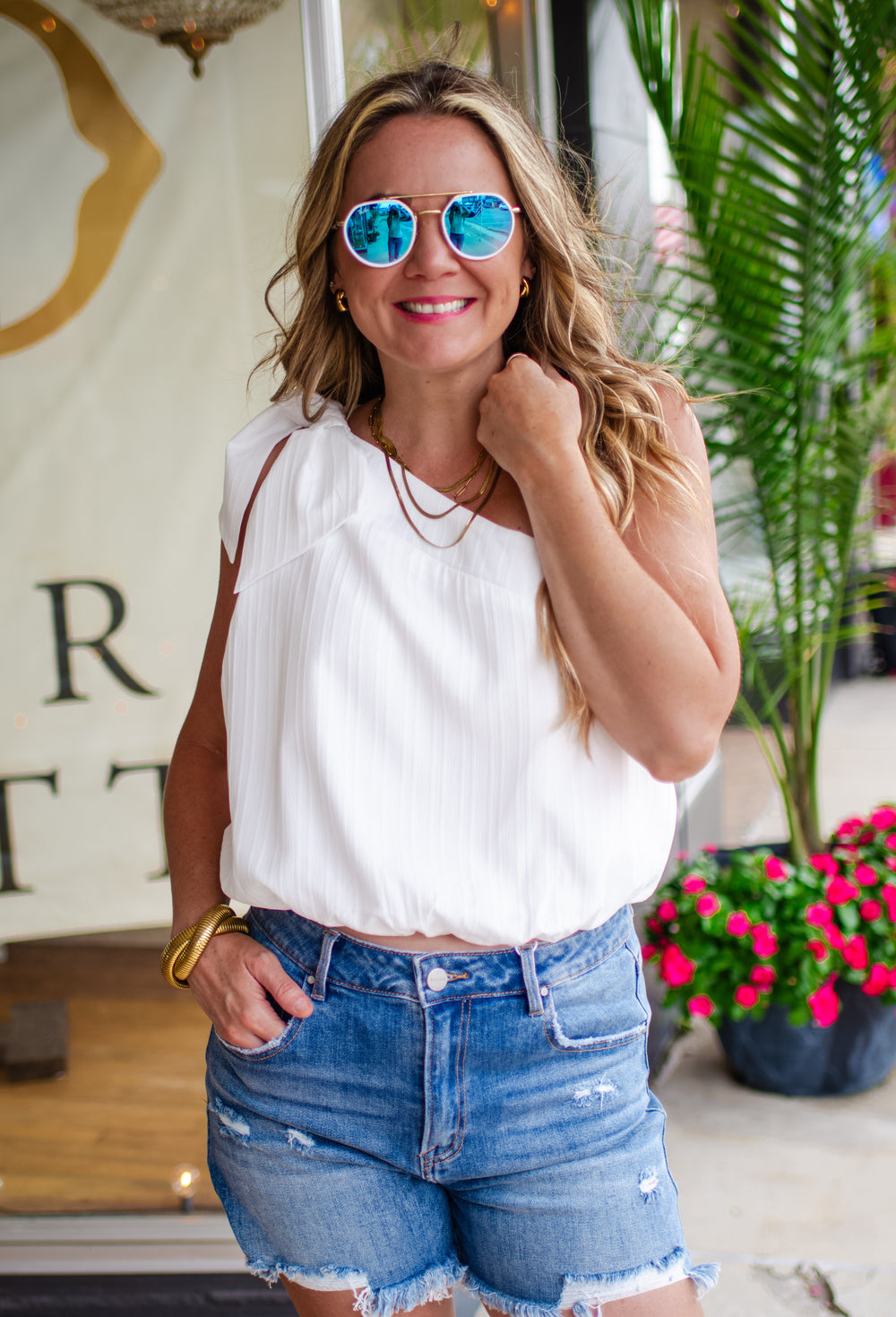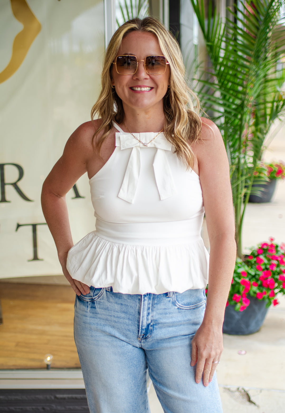 Spring Staple Oatmeal Bubble Hem Sleeveless Top