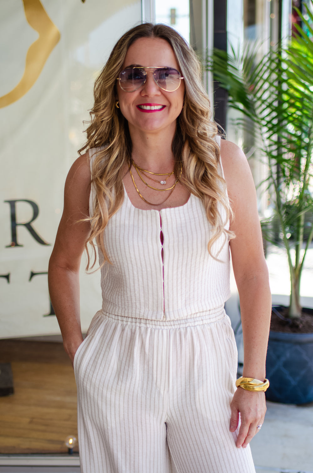 Up To Fate Knit Collared Button Down Tank in Taupe & White
