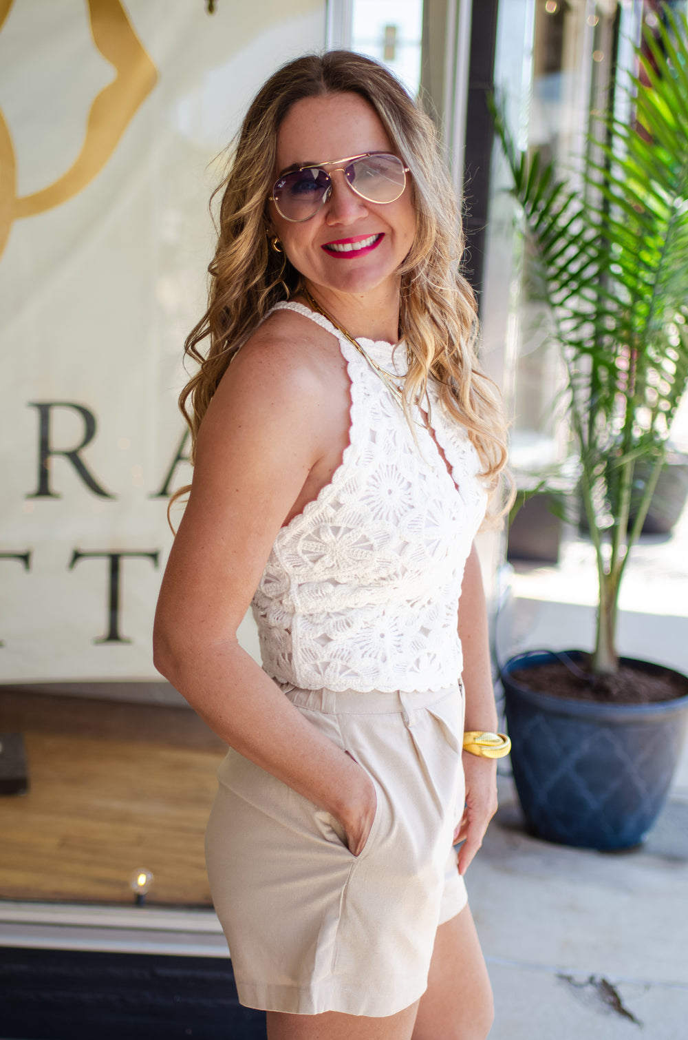 See Clearly Now Open Crochet Stitch Scoop Neck Sleeveless Tank in Beige