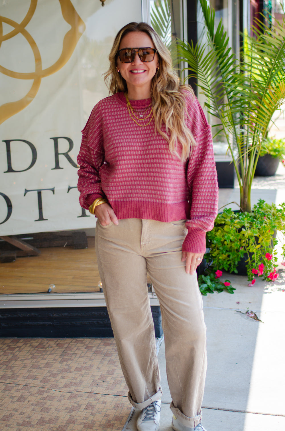 Perfectly Pink Cream & Pink Color block Knit Sweater Top