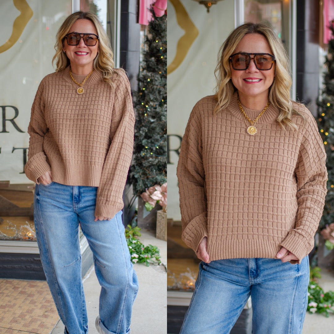 Cozy Autumn Ultra Soft Chenille Knit Sweater in Camel