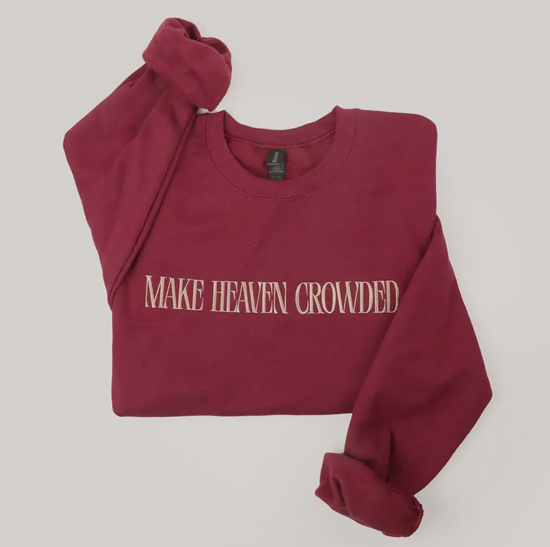 Make Heaven Crowded Embroidered Fleece Sweatshirt in Dark Red