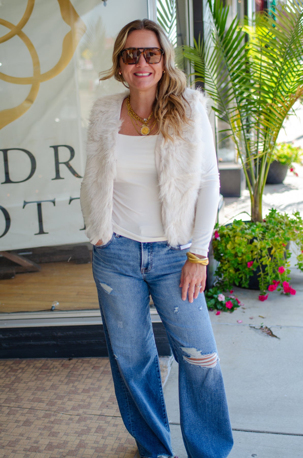 Add a touch of glam to your outfit with our Glam Fur Vest in Ecru. This cozy faux fur vest is perfectly lined and easy to layer over your favorite tops, giving you instant style and warmth with a playful flair. Turn heads and stay snug wherever you go!