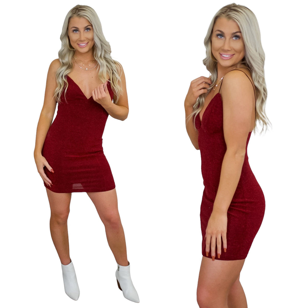RedÊmetallic fitted mini dress with a stretch fabric.Ê
