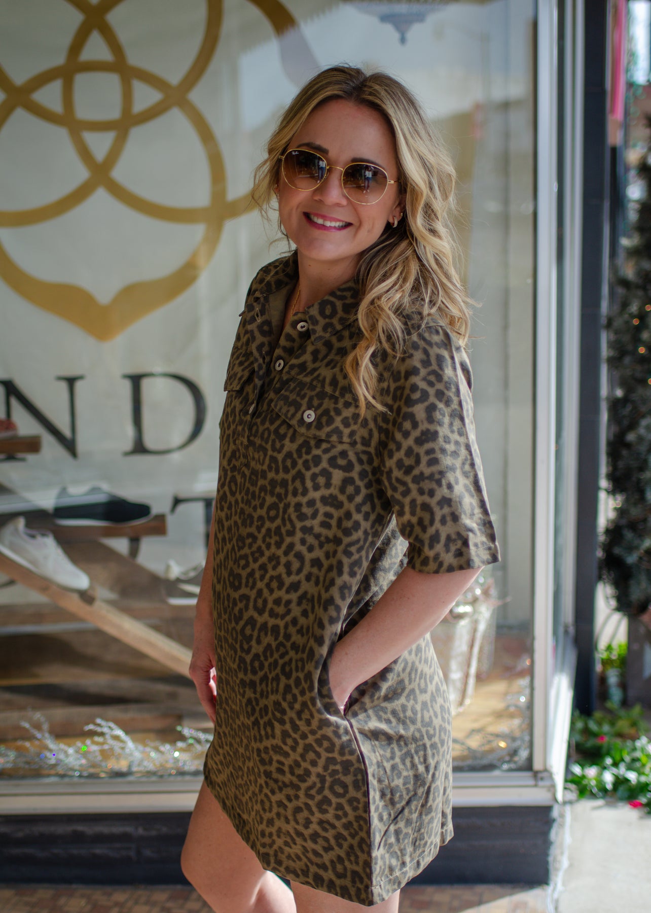 Unleash your wild side with this playful Leopard Love Collared Button Down Dress in rich mocha tones. Featuring a timeless leopard print pattern, this short-sleeve shift dress combines classic style with a touch of sass. The crisp collar and button-down front add polished charm, while the relaxed shift silhouette keeps things effortlessly comfortable. Perfect for casual outings or dressing up with accessories, this versatile piece proves that animal print never goes out of style.